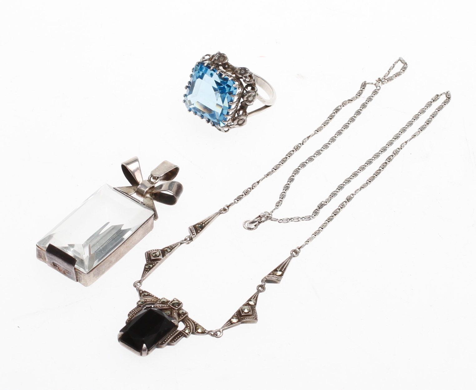 38417. SMYKKER, 3 dele, sølv med sten. 1900-tallet.
