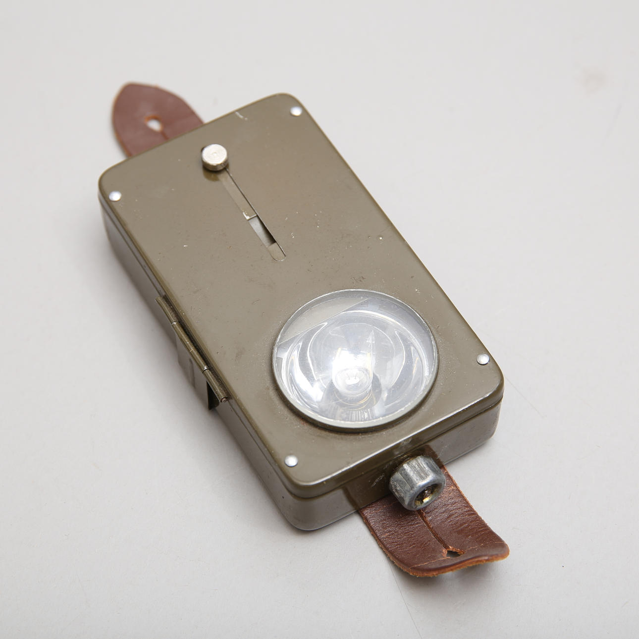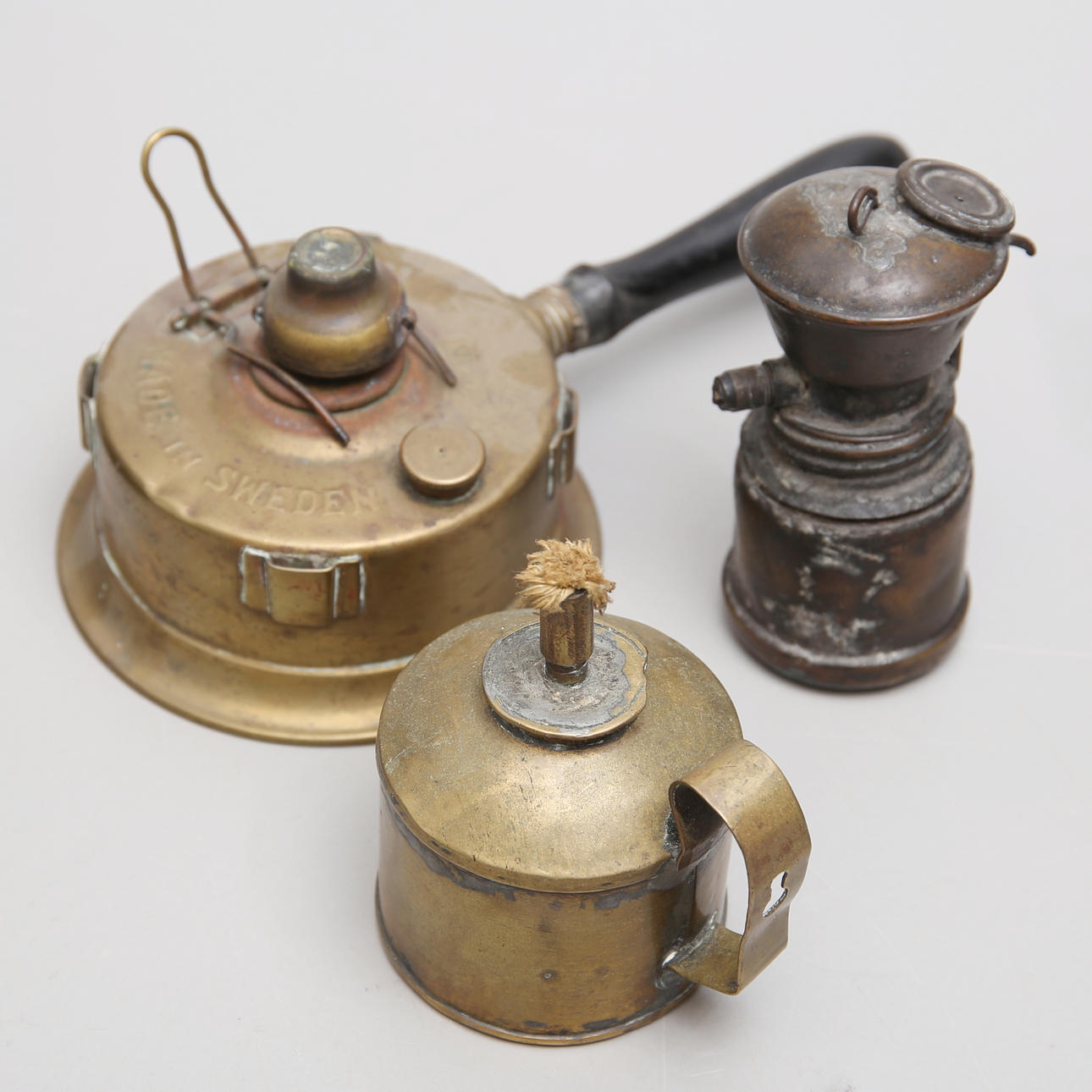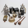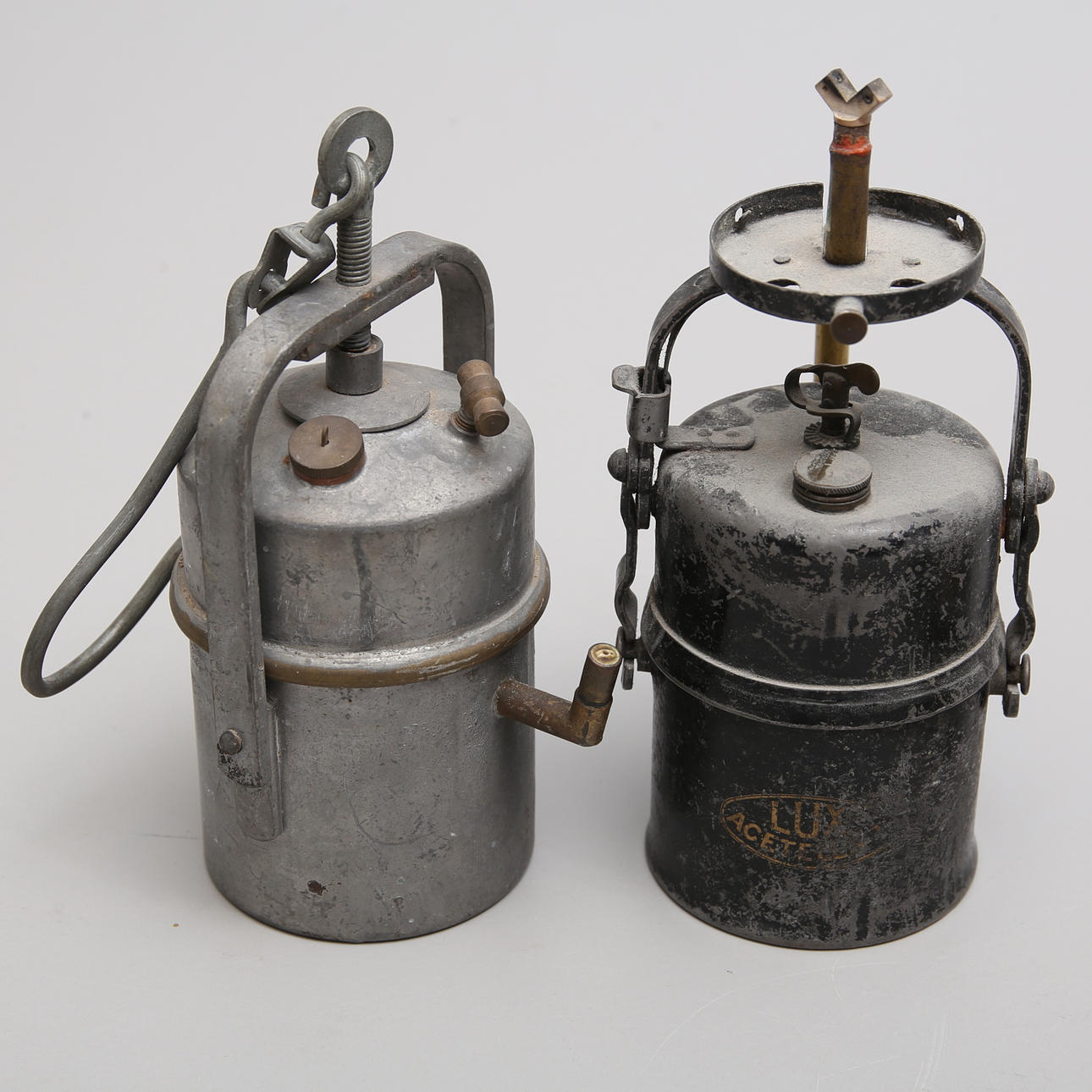 Hårdmetallamper 2 stk, militær, højde ca. 24 cm Lommelygter, 3 stk, Kerosin køkken, Radius nr. 40, længde, ca. 23 cm etc.