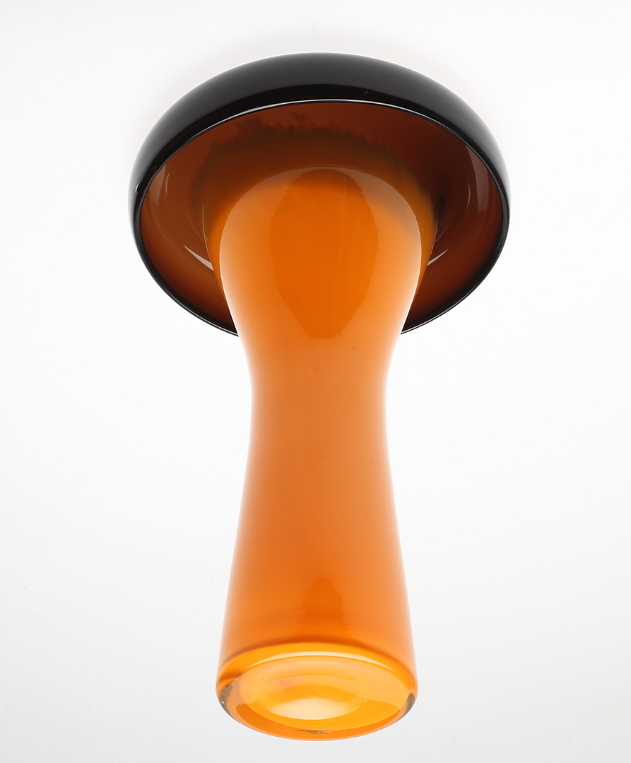 384804. GLASVASE, orange og sort glas, 20. århundrede.