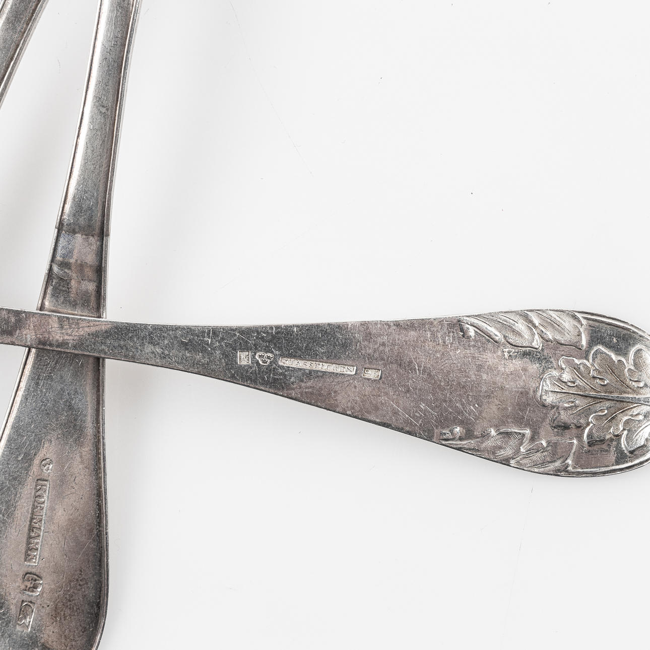 3850914. ANTIKKE SØLVSKEER, 10 stk.