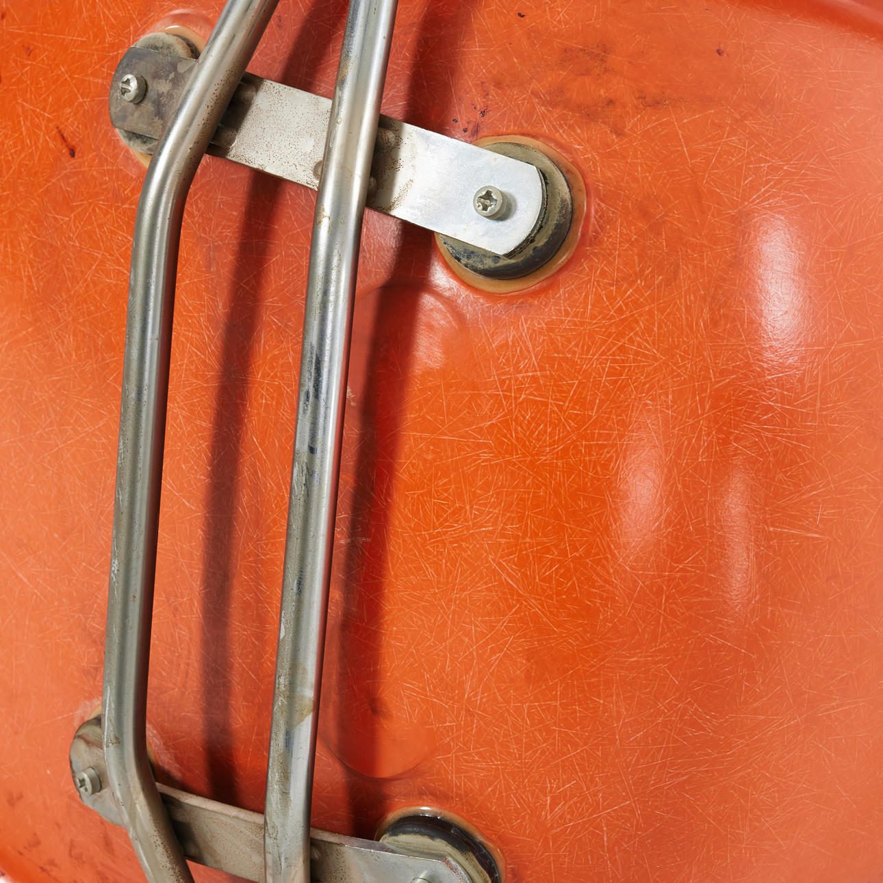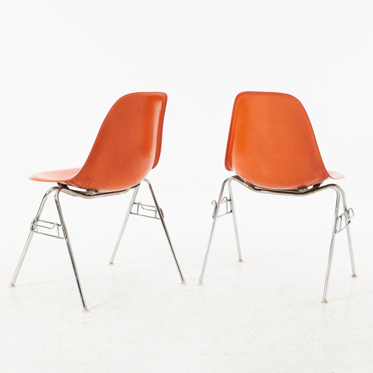 3852630. CHARLES & RAY EAMES. Stole, 2 stk, DSS, stabelbar, orange glasfiber, krom.