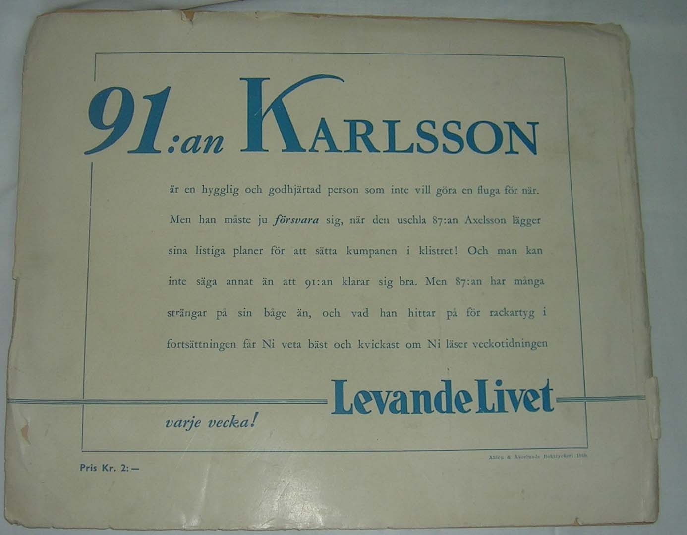 385370. SERIER. Julen 1940 med 91 Karlsson.