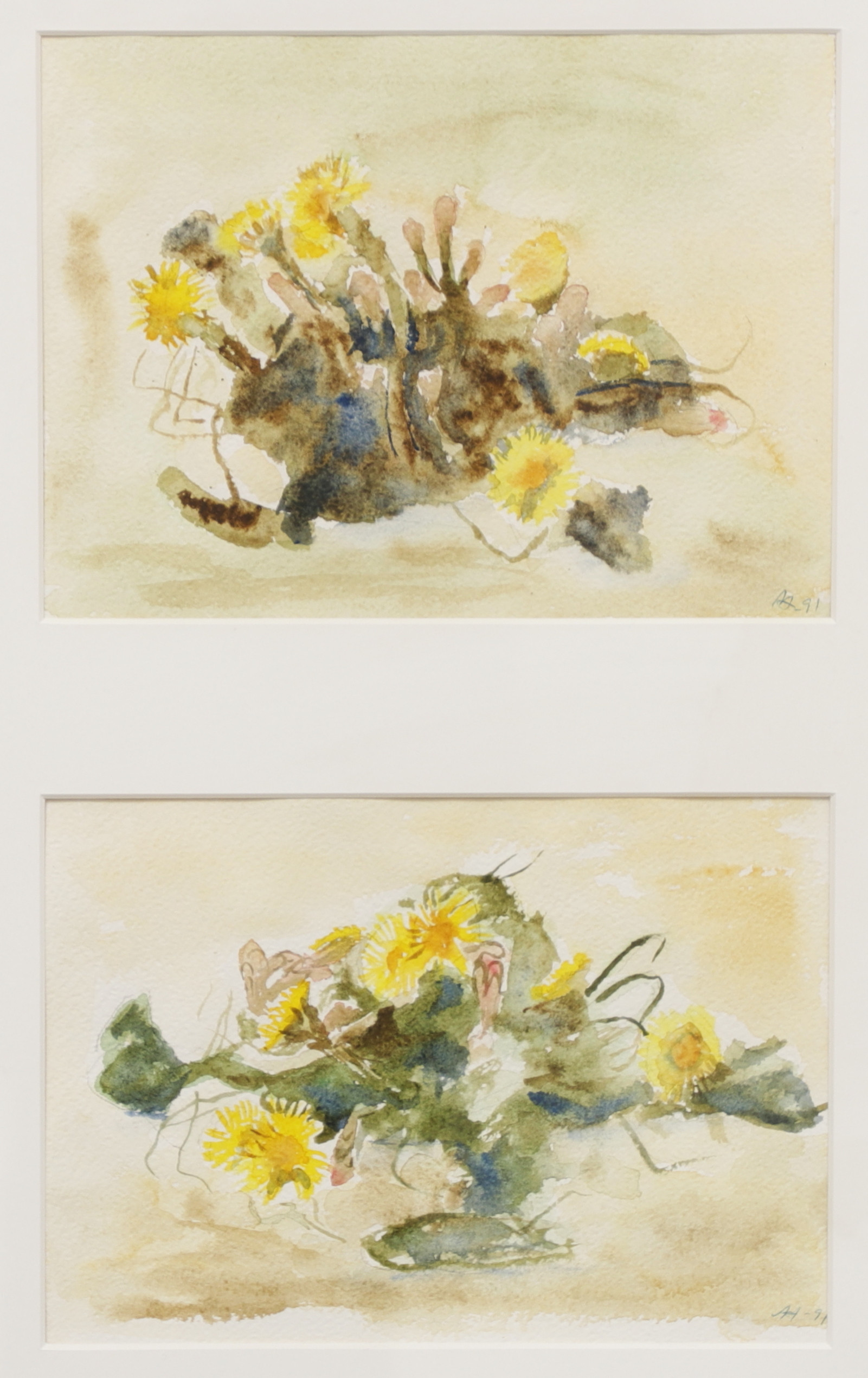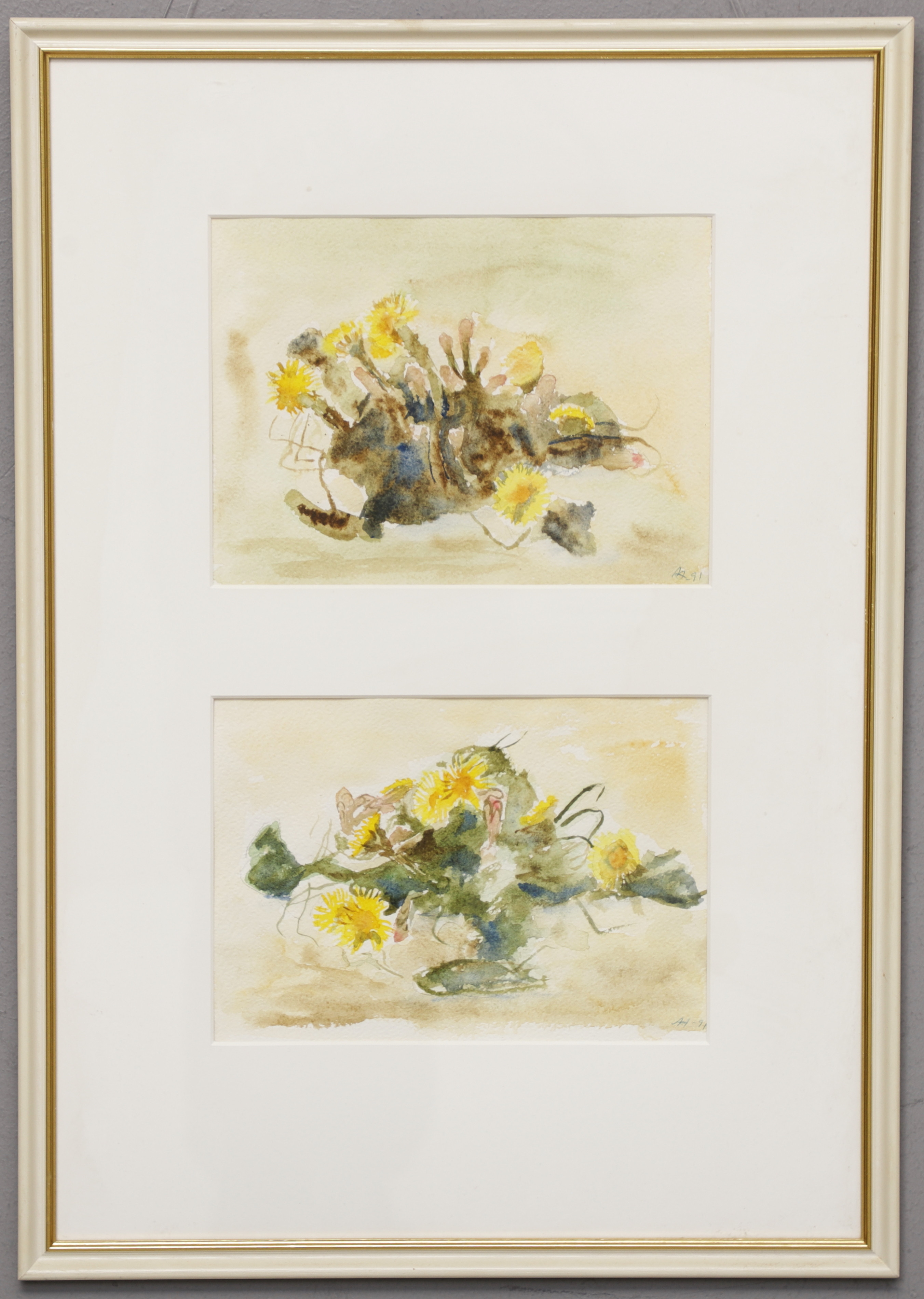 3854350. OIDENTIFIERAD KONSTNÄR. „Tussilago“, akvarel, signeret.