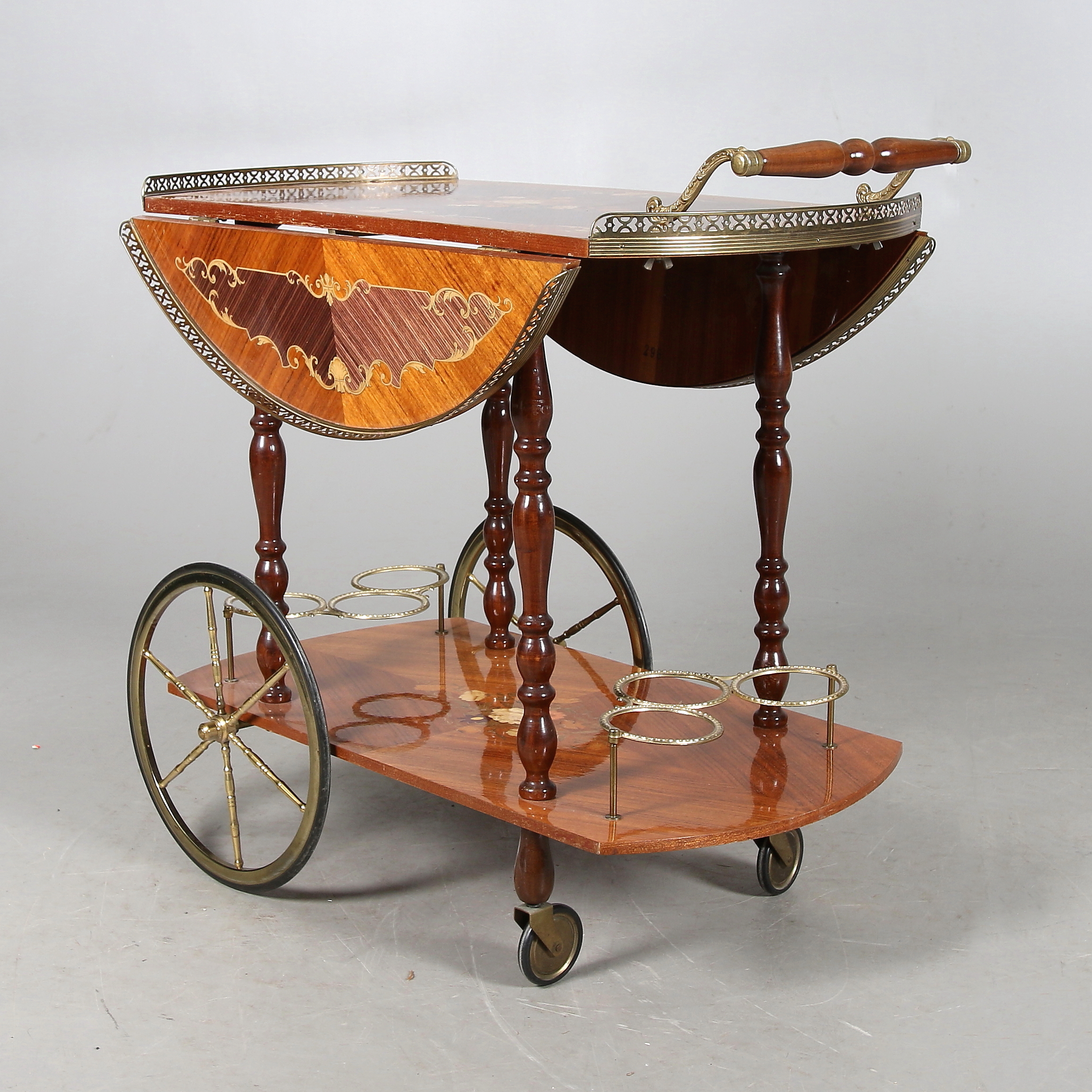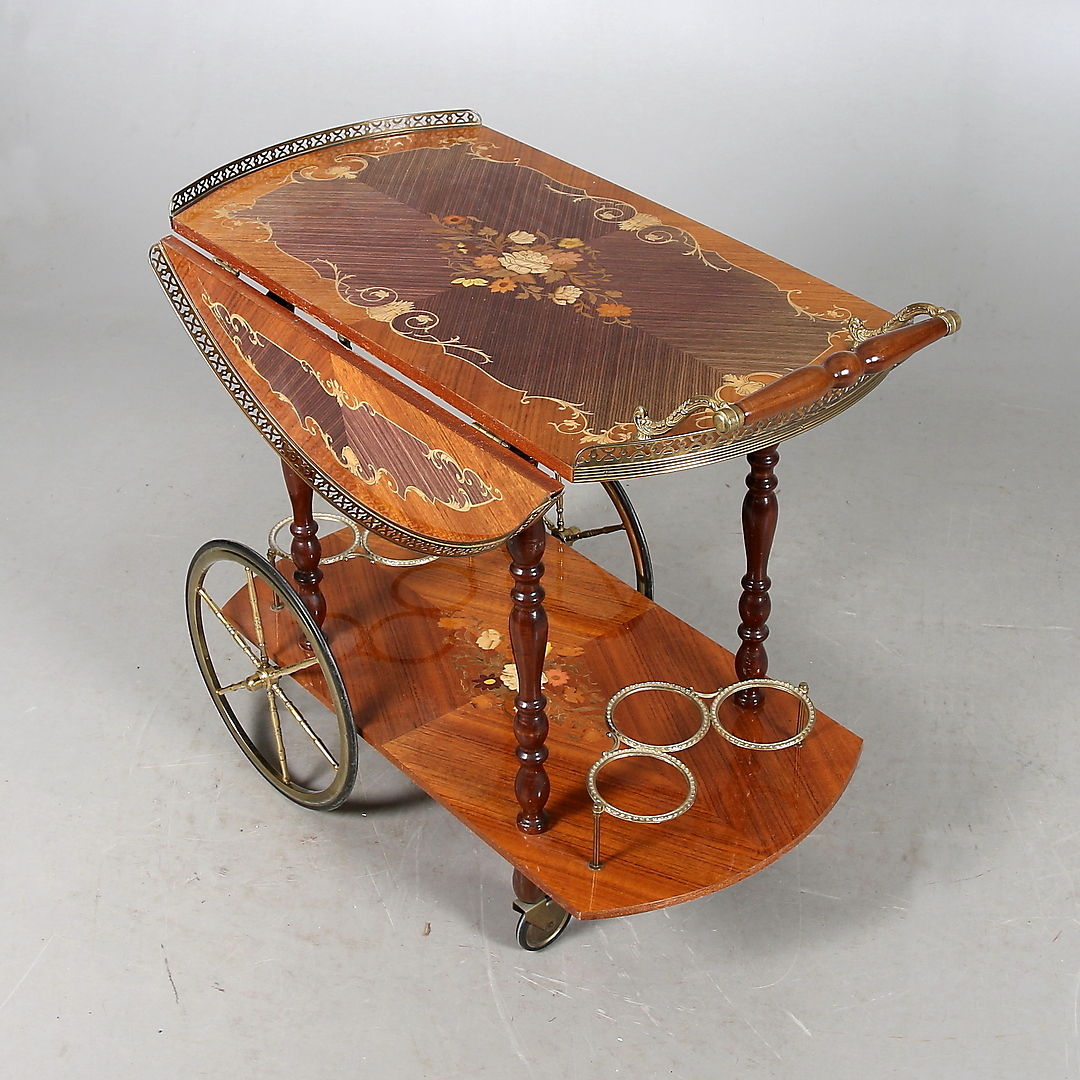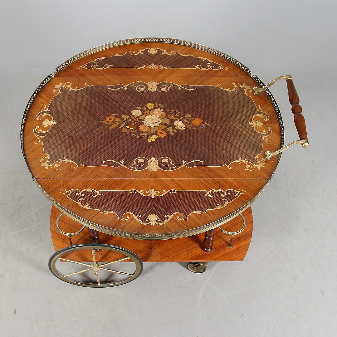 385477. SERVINGSVOGN, intarsia og messing, 20. århundrede.
