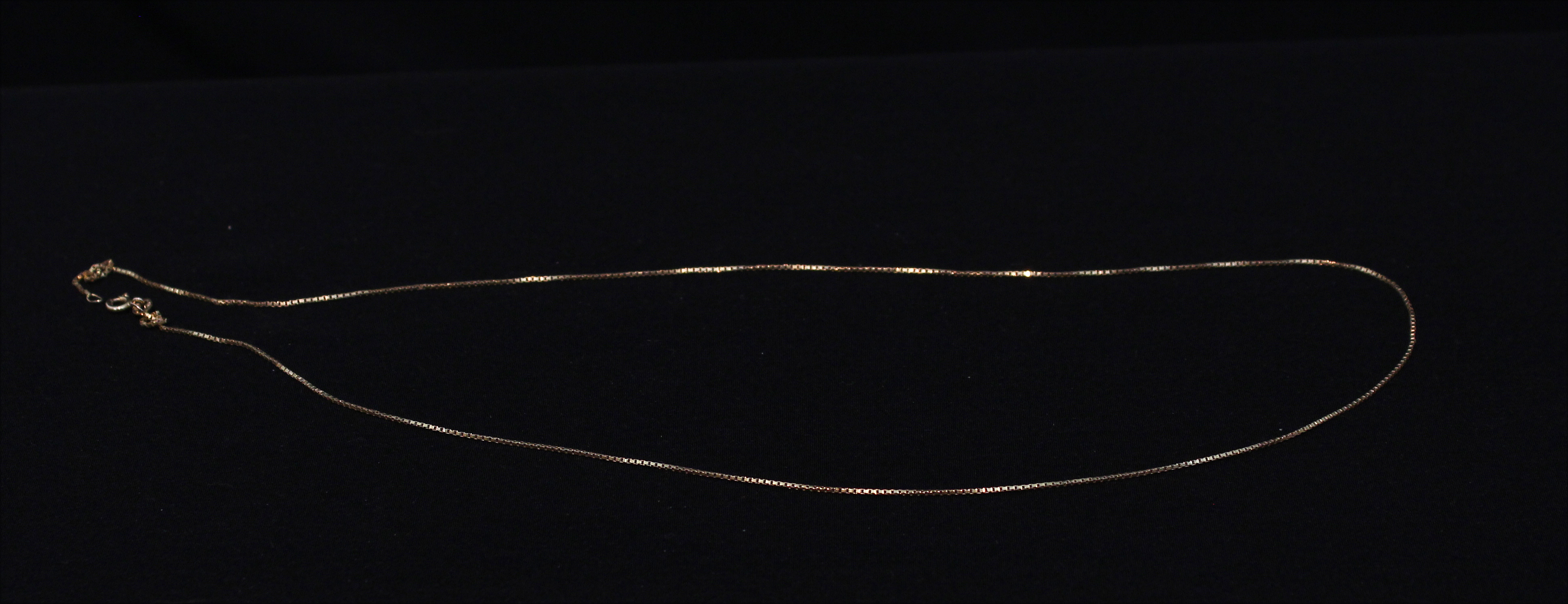 38603. Guld halskæde. Stemplet 750. Vægt 2,5 gram.