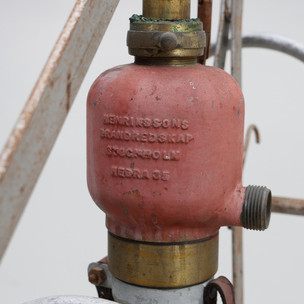 BRANDSPRØJTE, 2-delt brandpumpe til montering af hestevogn. Hebra.
