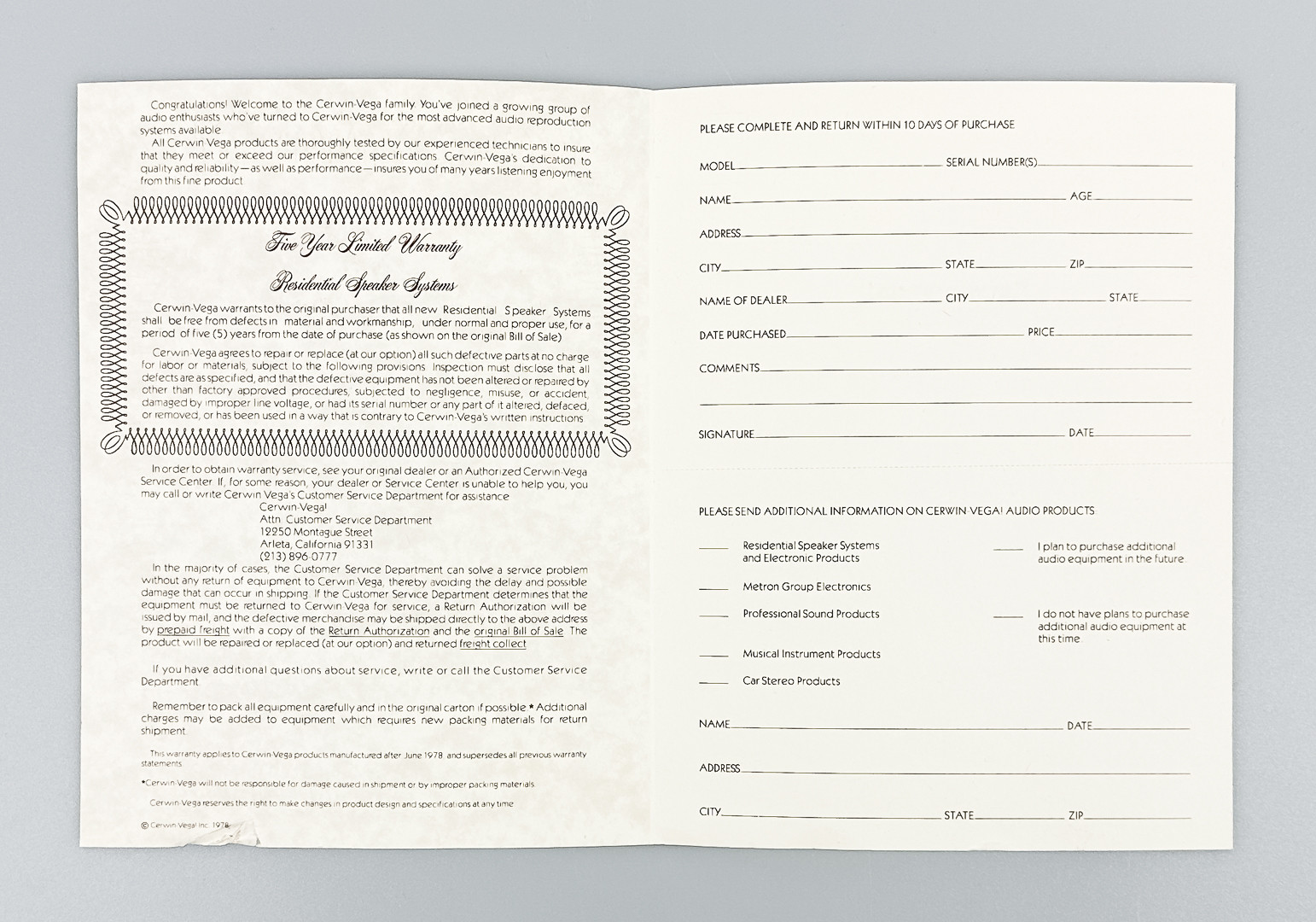 3872834. HØJTTALER, Cerwin-Vega CH 504R.