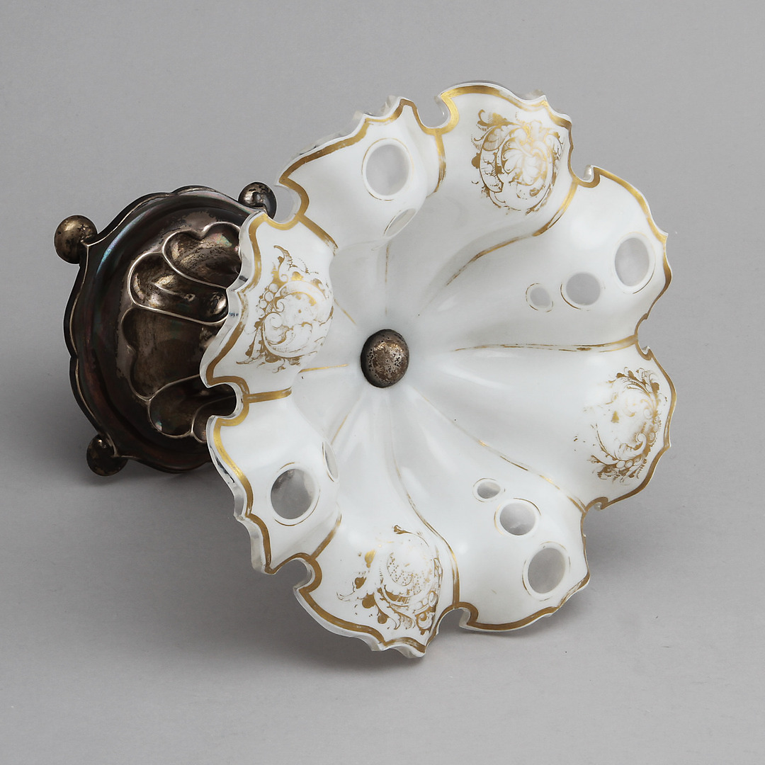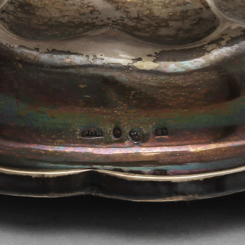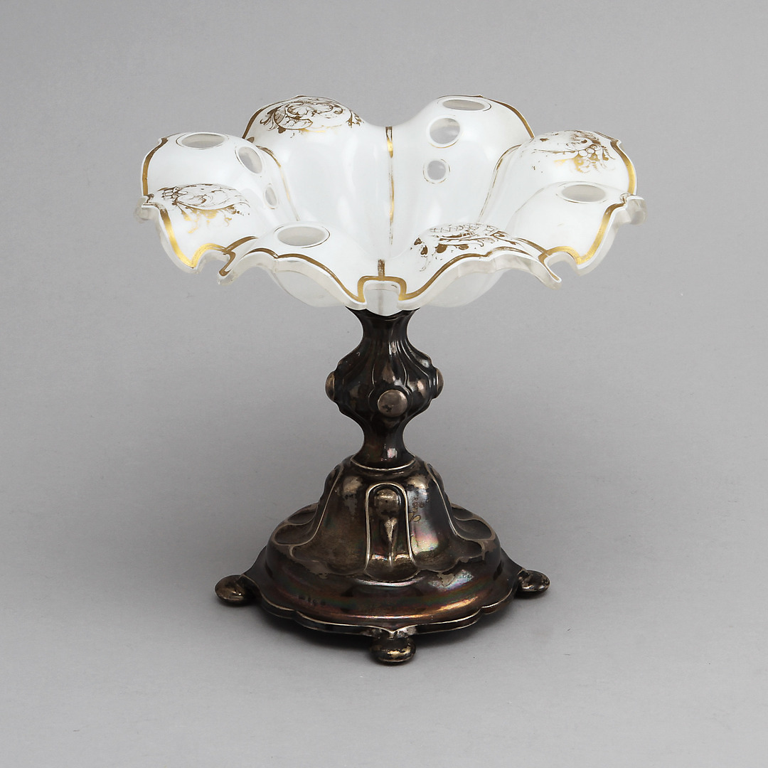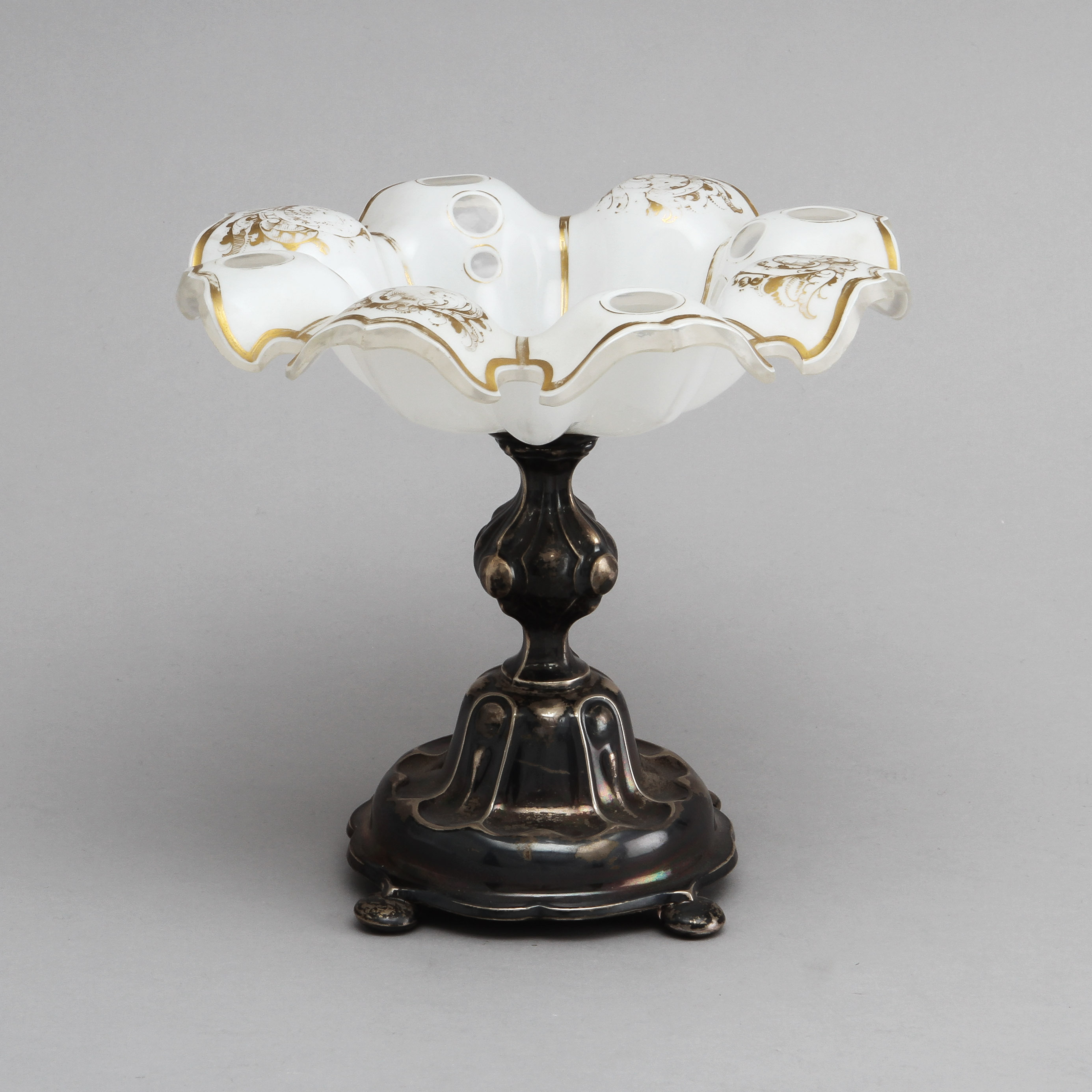 387622. VISITKORTSKÅL, sølv og glas, 1856.