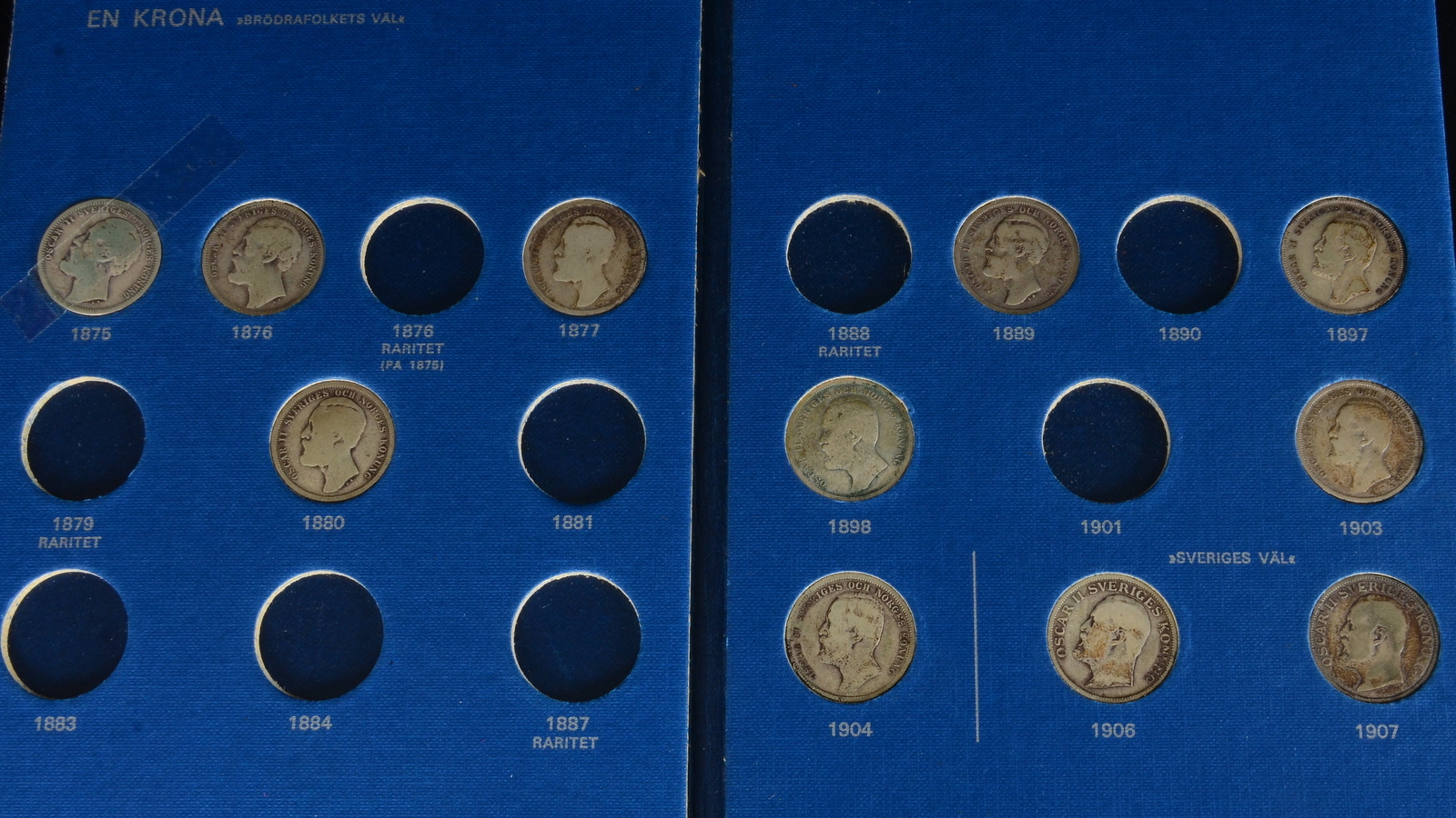 387795. MØNTSAMLING, Sverige, 1 SEK, 2 SEK mv.