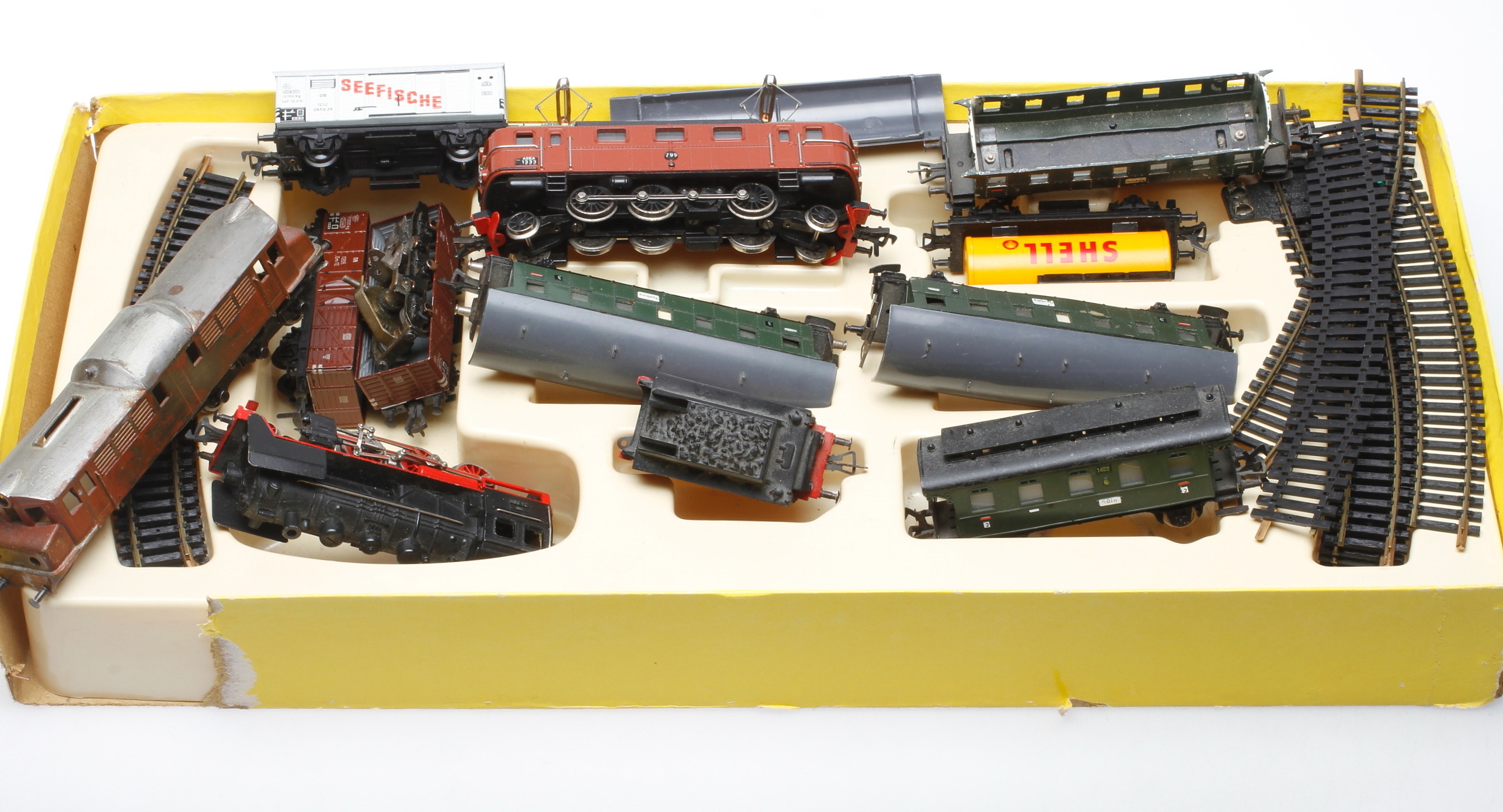 388402. MODEL TOG og VOGN, 12 dele, Fleischmann, 1900-tallet.