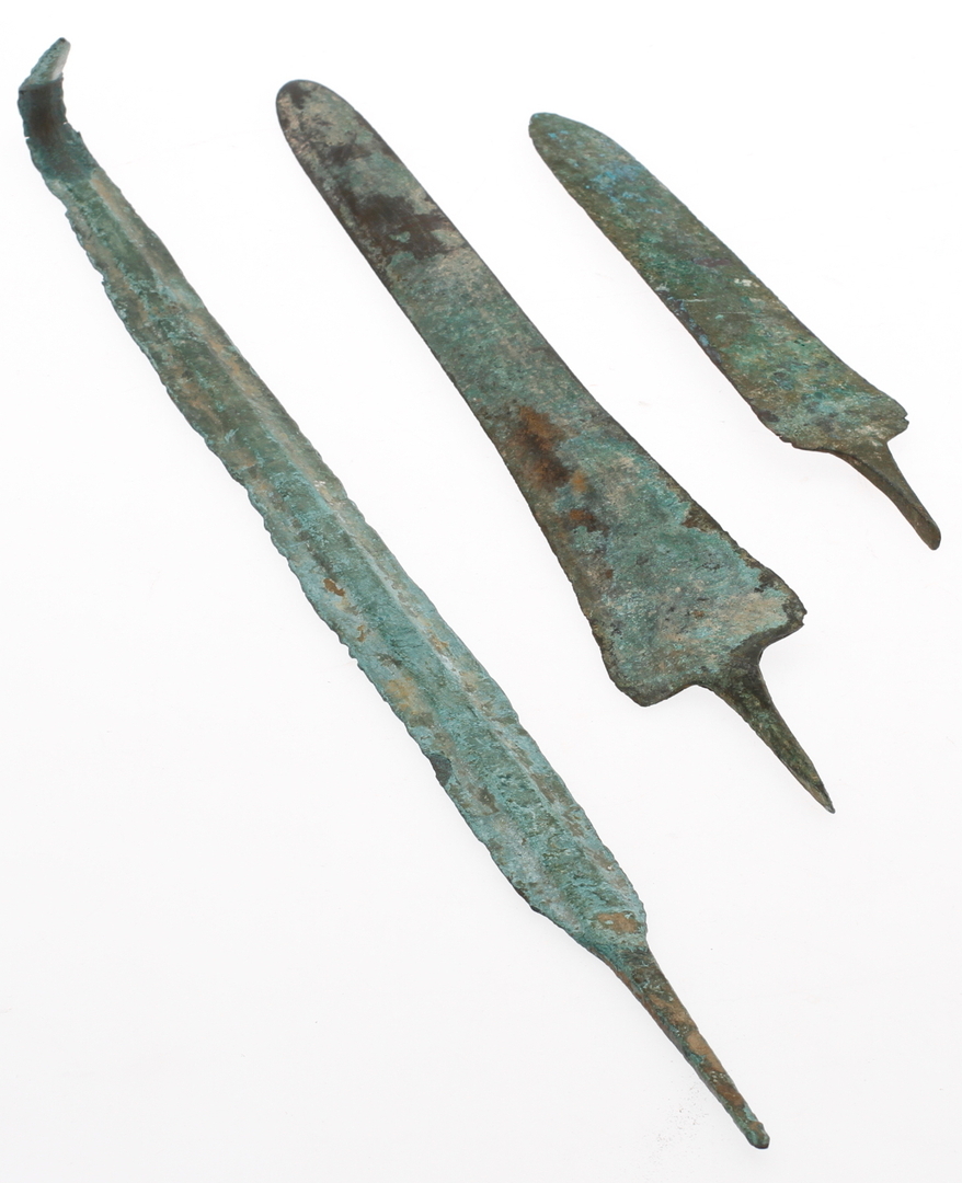38859. DOLKBLAD og SPJITSPETTS, 3 dele, bronze.