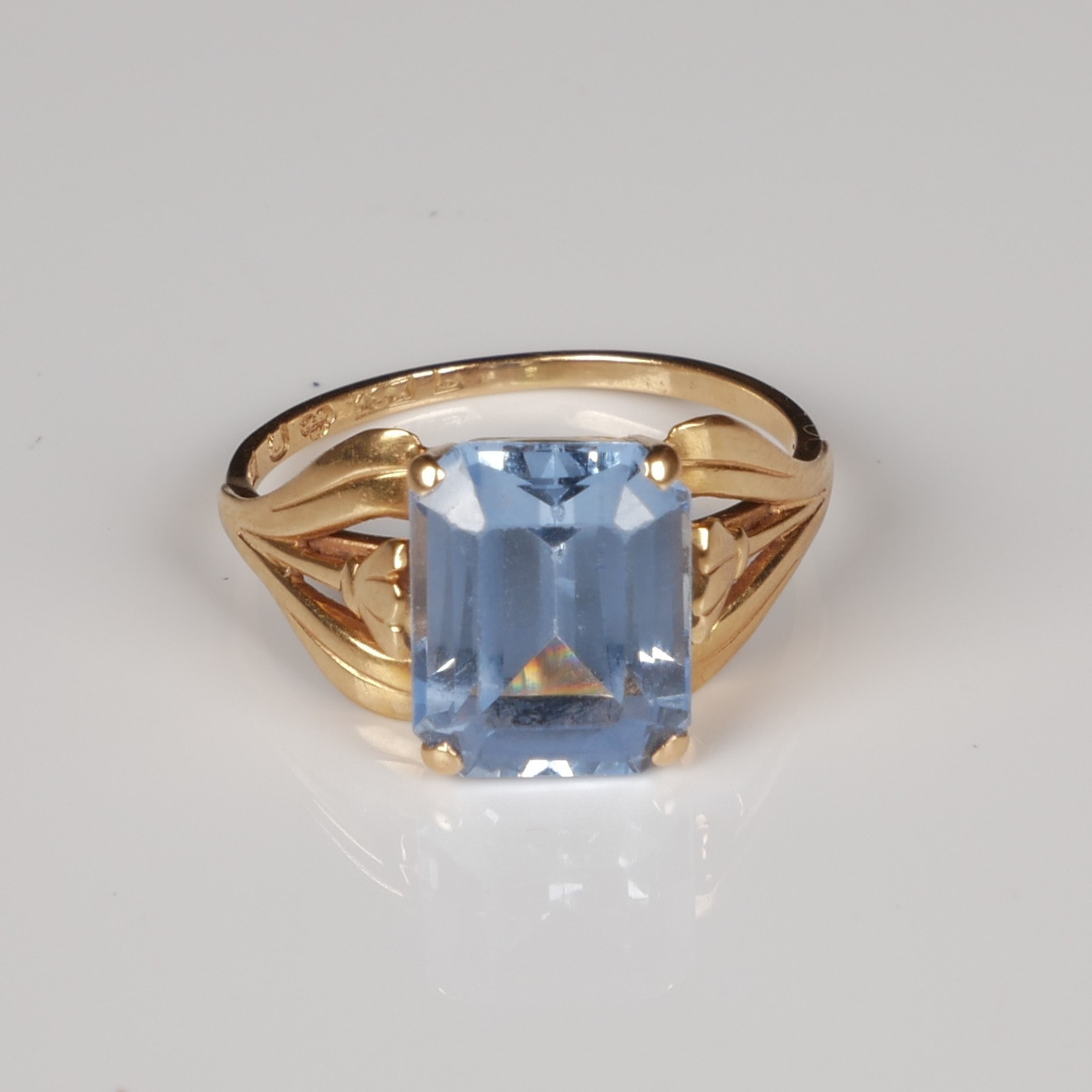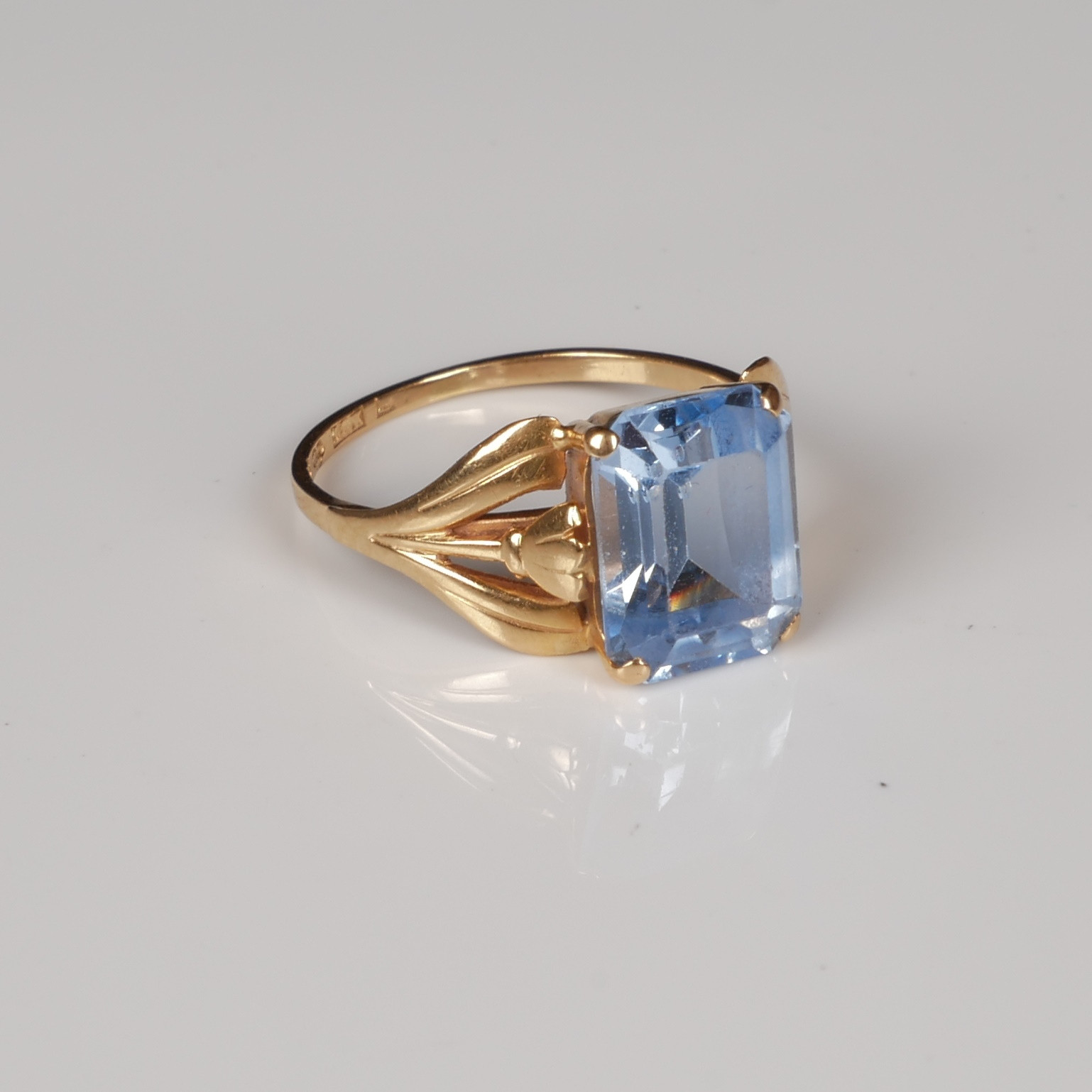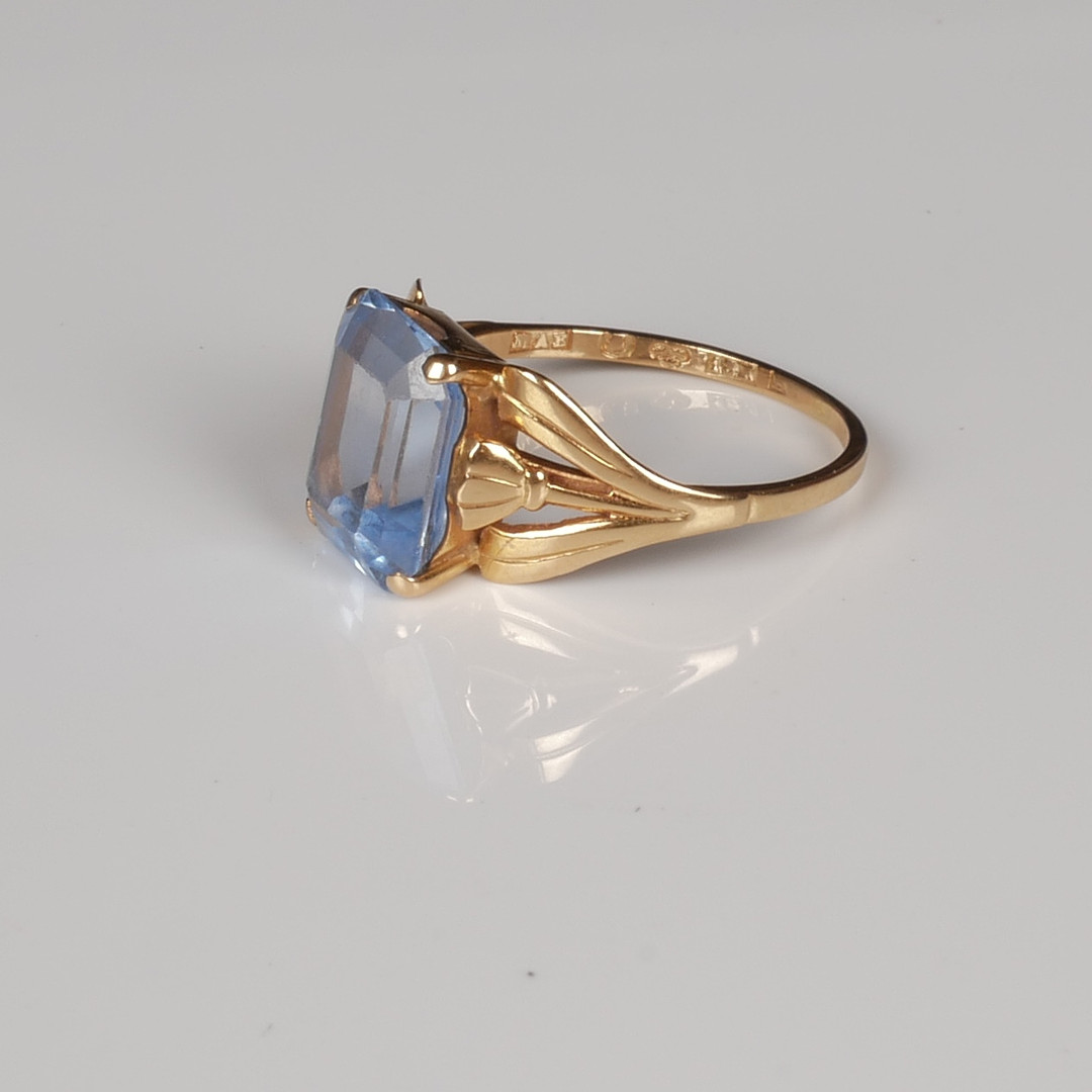 3886188. RING, 18K guld med syntetisk akvamarin.