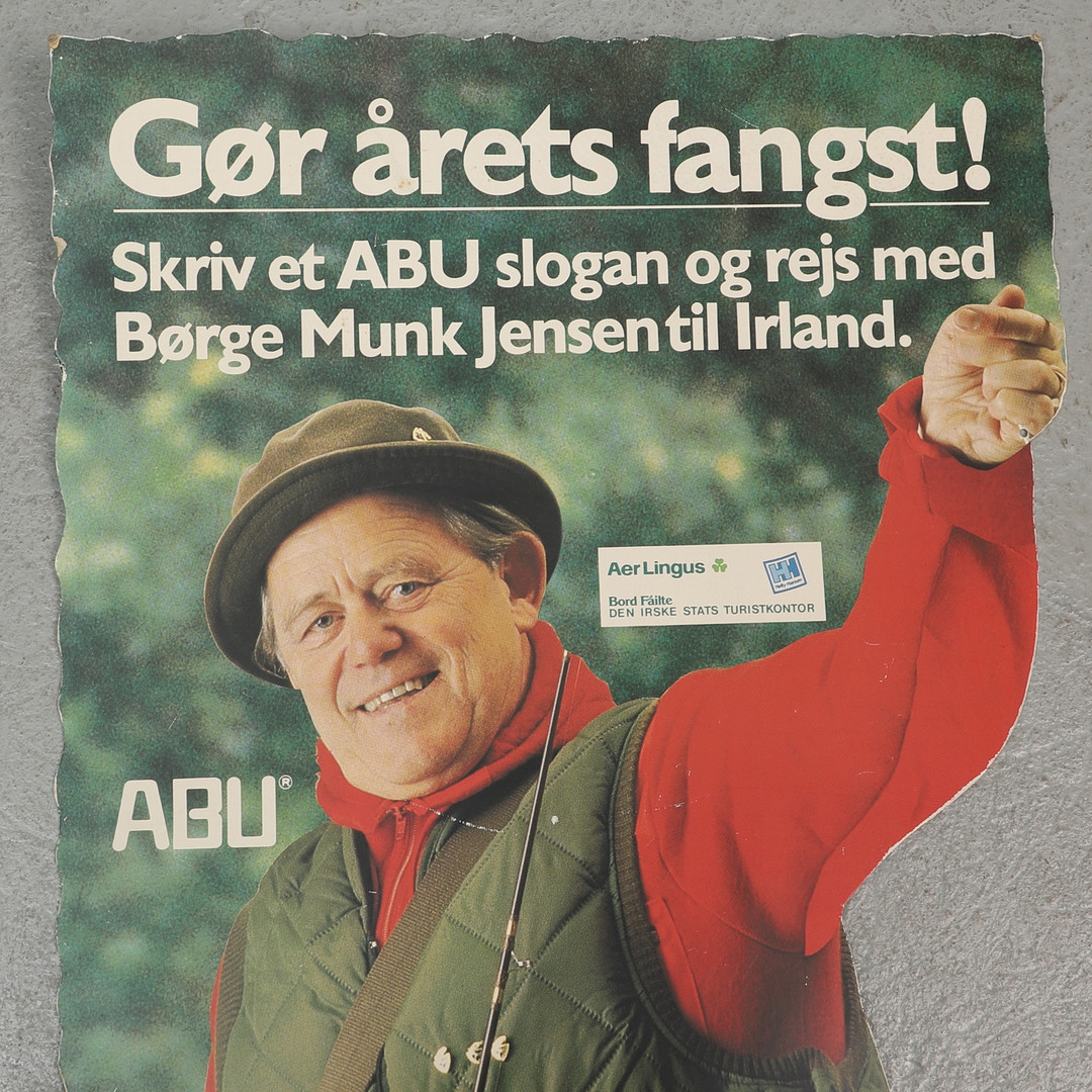 3888940. REKLAMESKILT, pap, Børge Munk Jensen, ABU, Danmark.