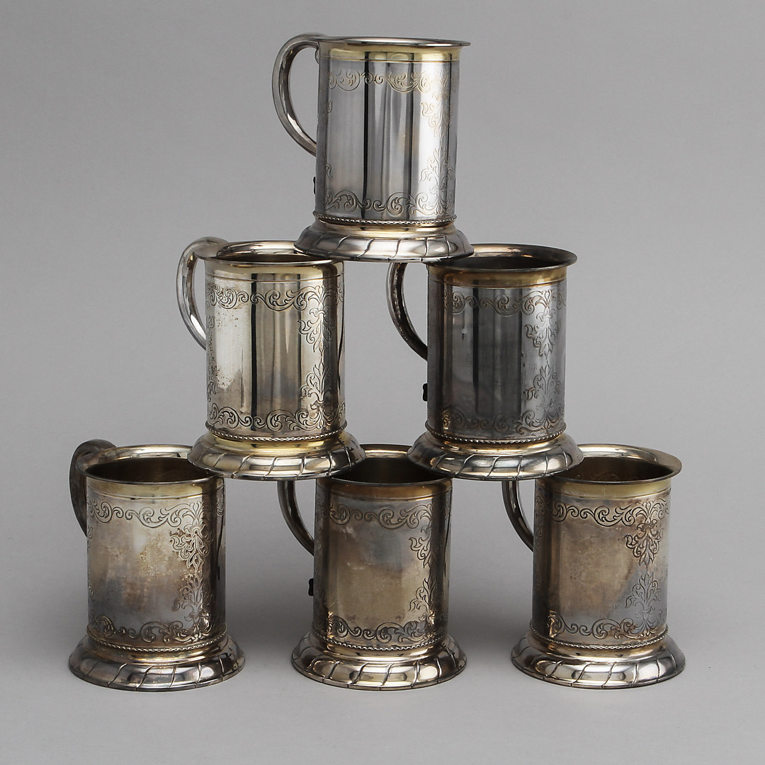 389043. KRUS, 6 stk, sølv, TESI 1949, vægt ca 1020 gram.