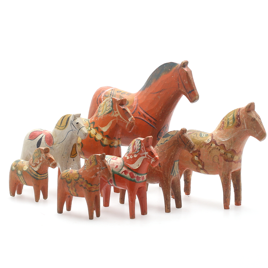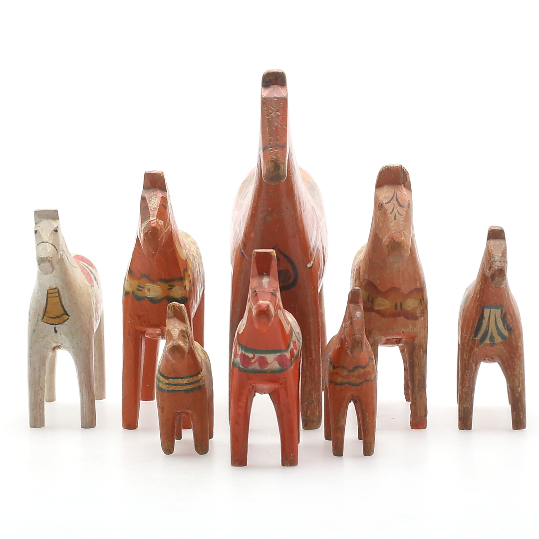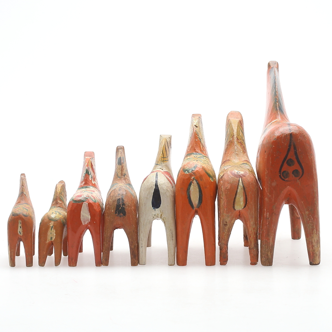 389308. DALAH HESTE, træ, 8 stk, 18/1900 tallet.