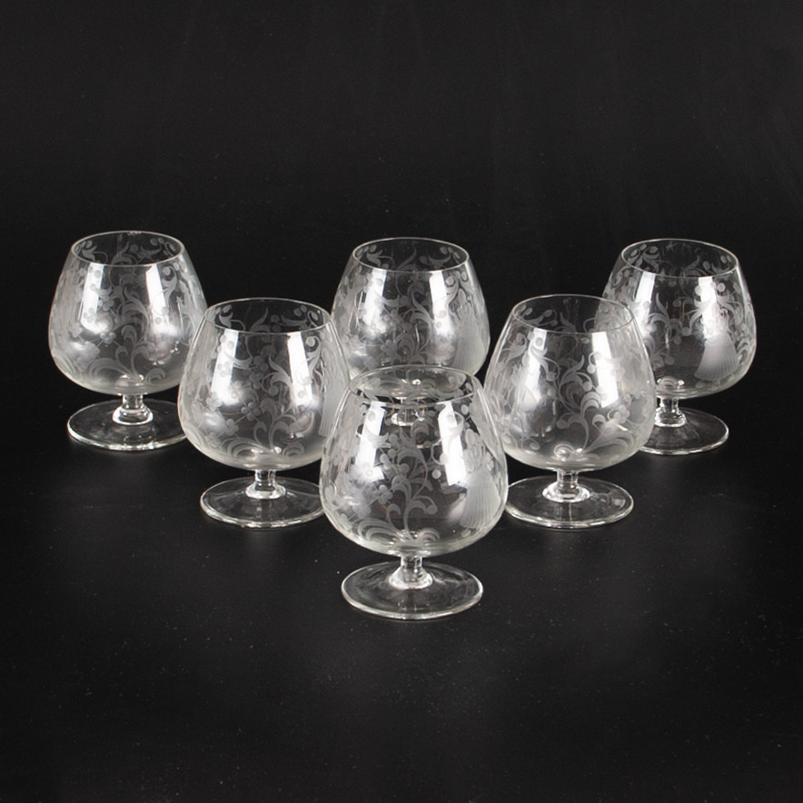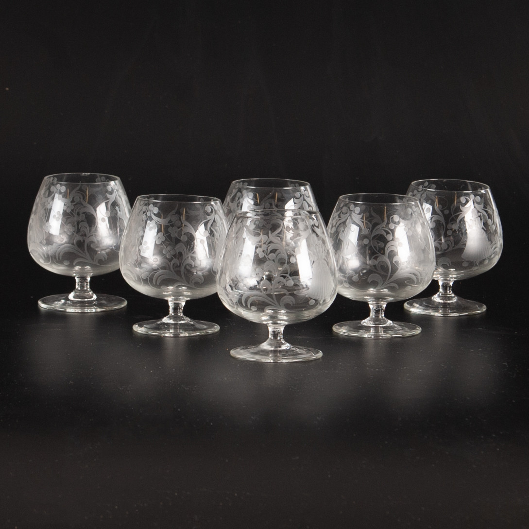 3893168. COGNAC KOPPER. 6 stk, ætset indretning.