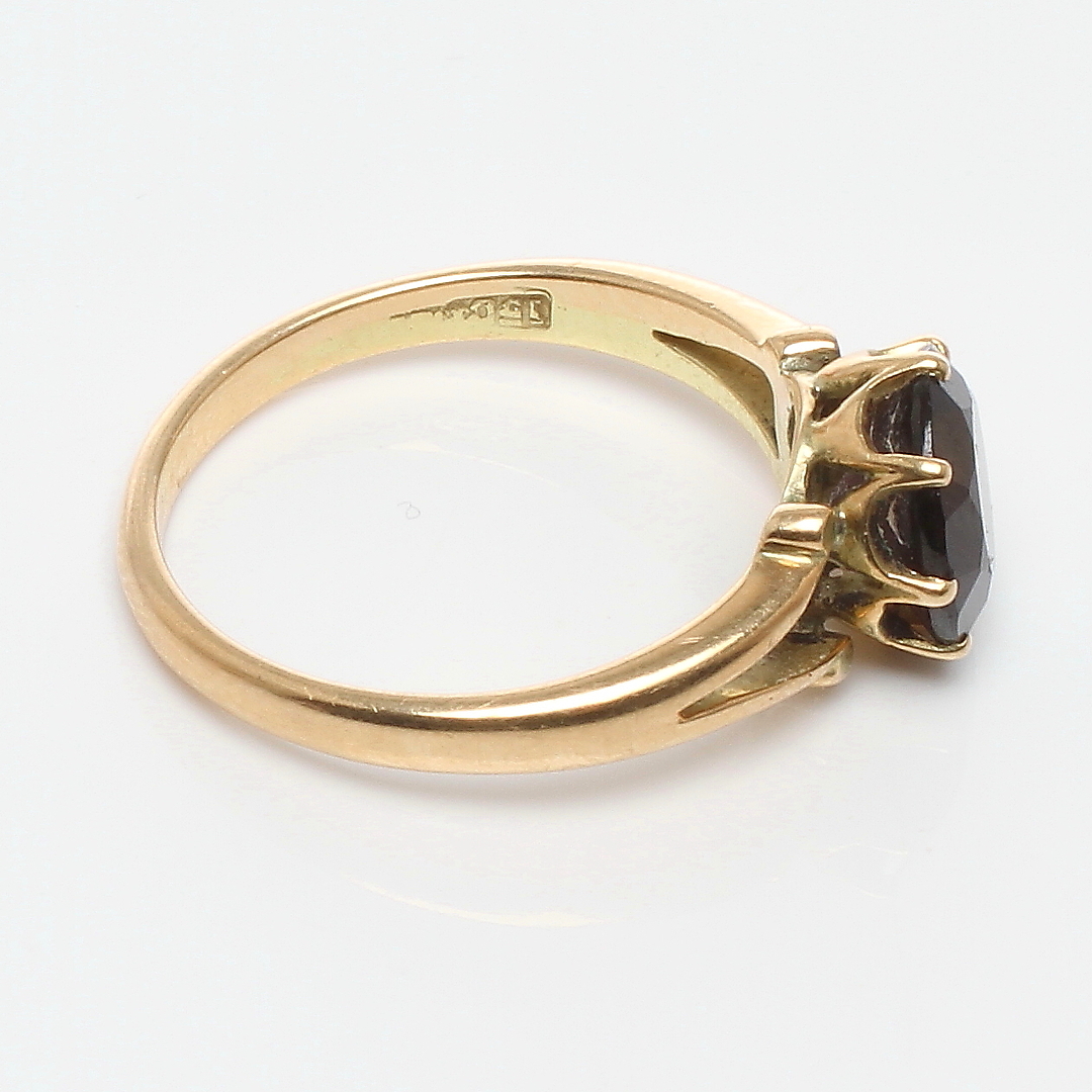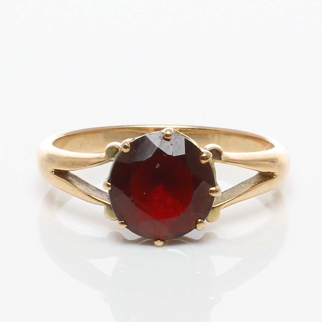 389335. RING 14k guld med røde sten, 1900-tallet.