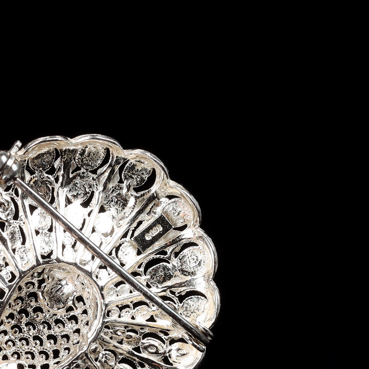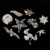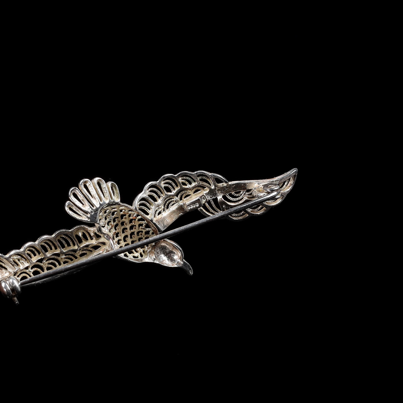 3896613. Brocher, 9 stk, fugle og blomster, sølv.