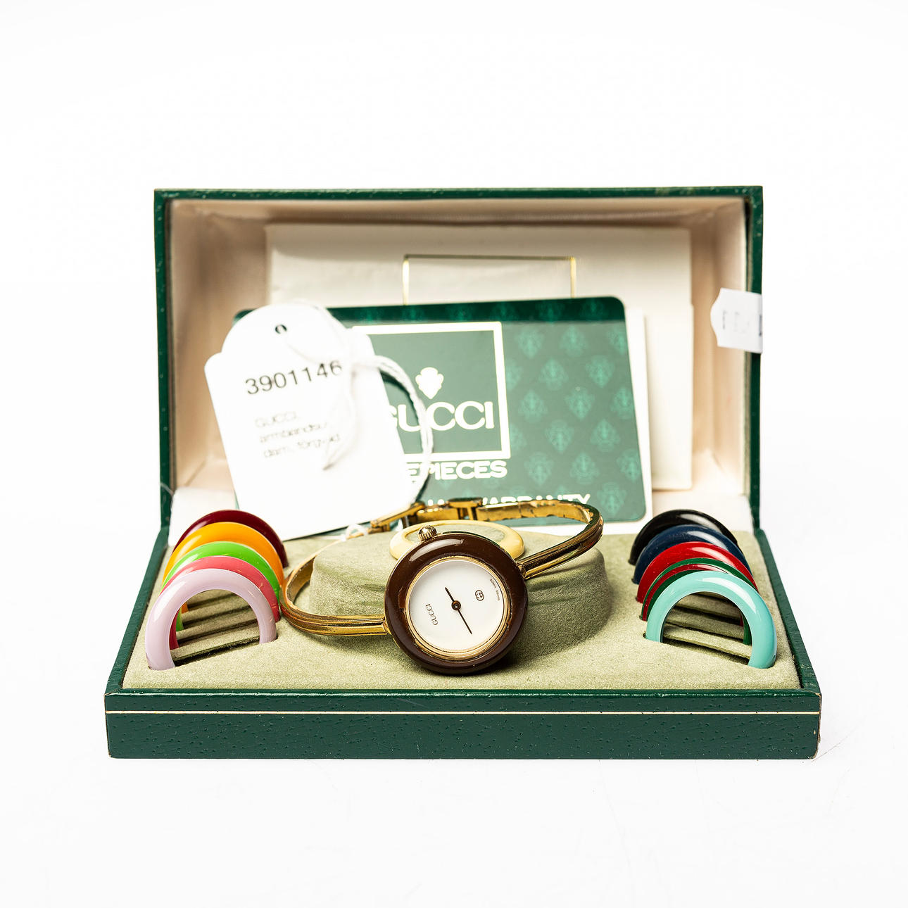 3901146. GUCCI, armbåndsur til kvinder, forgyldt.