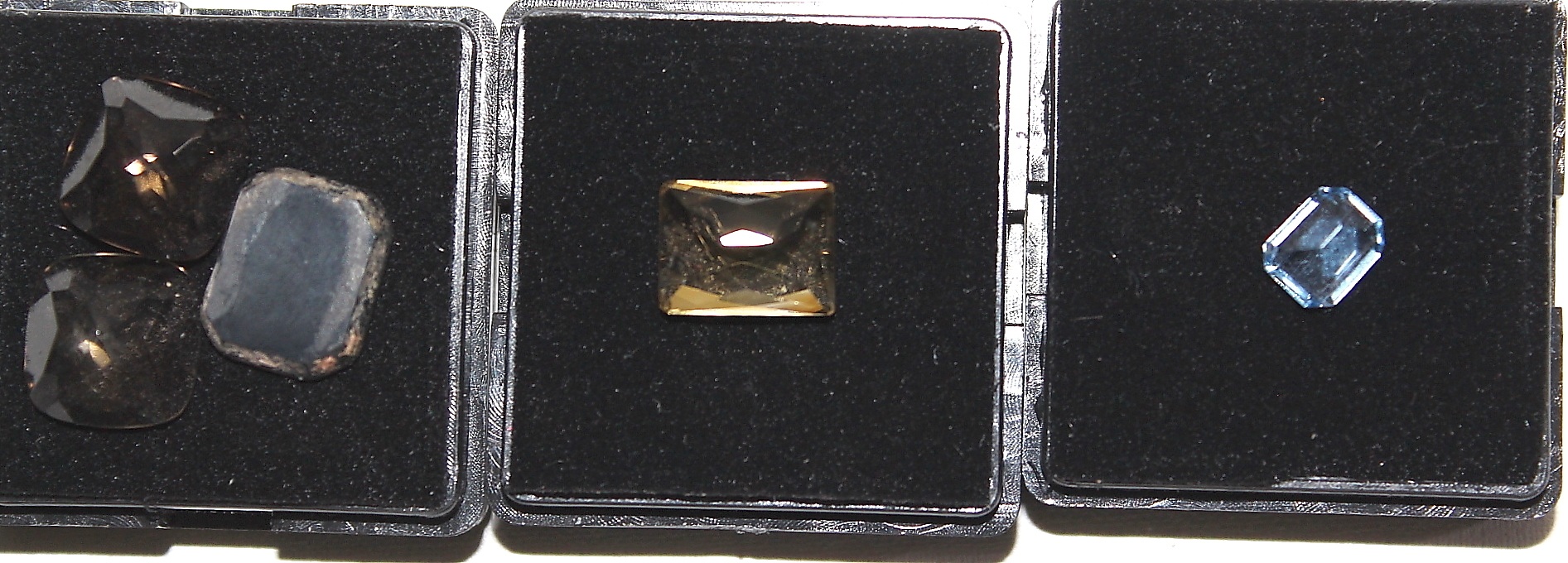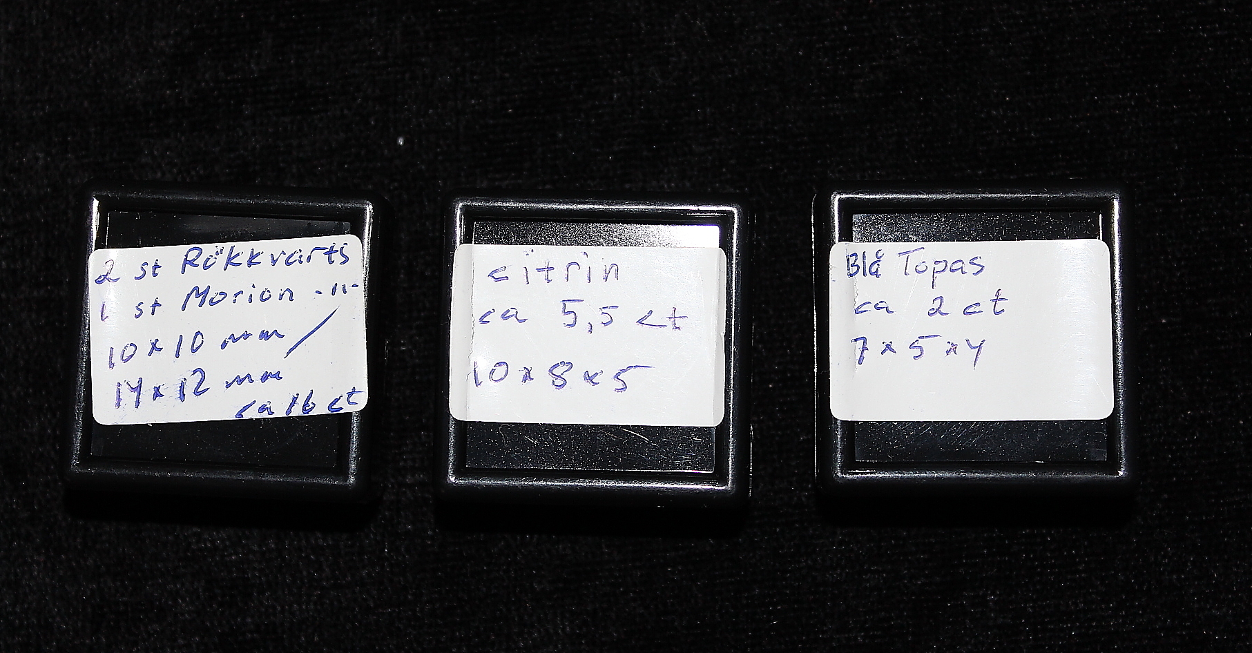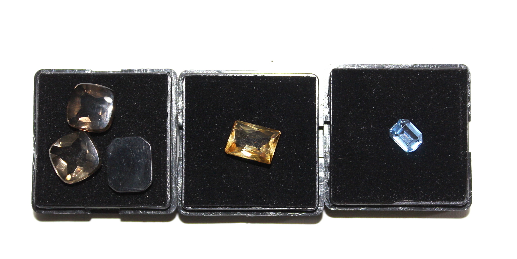 390140. GEMS, 5 stk, røgkvarts, citrin, blå topas.