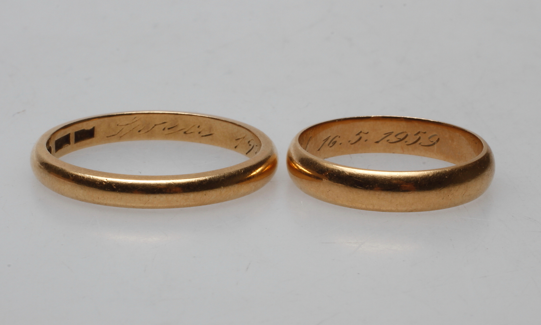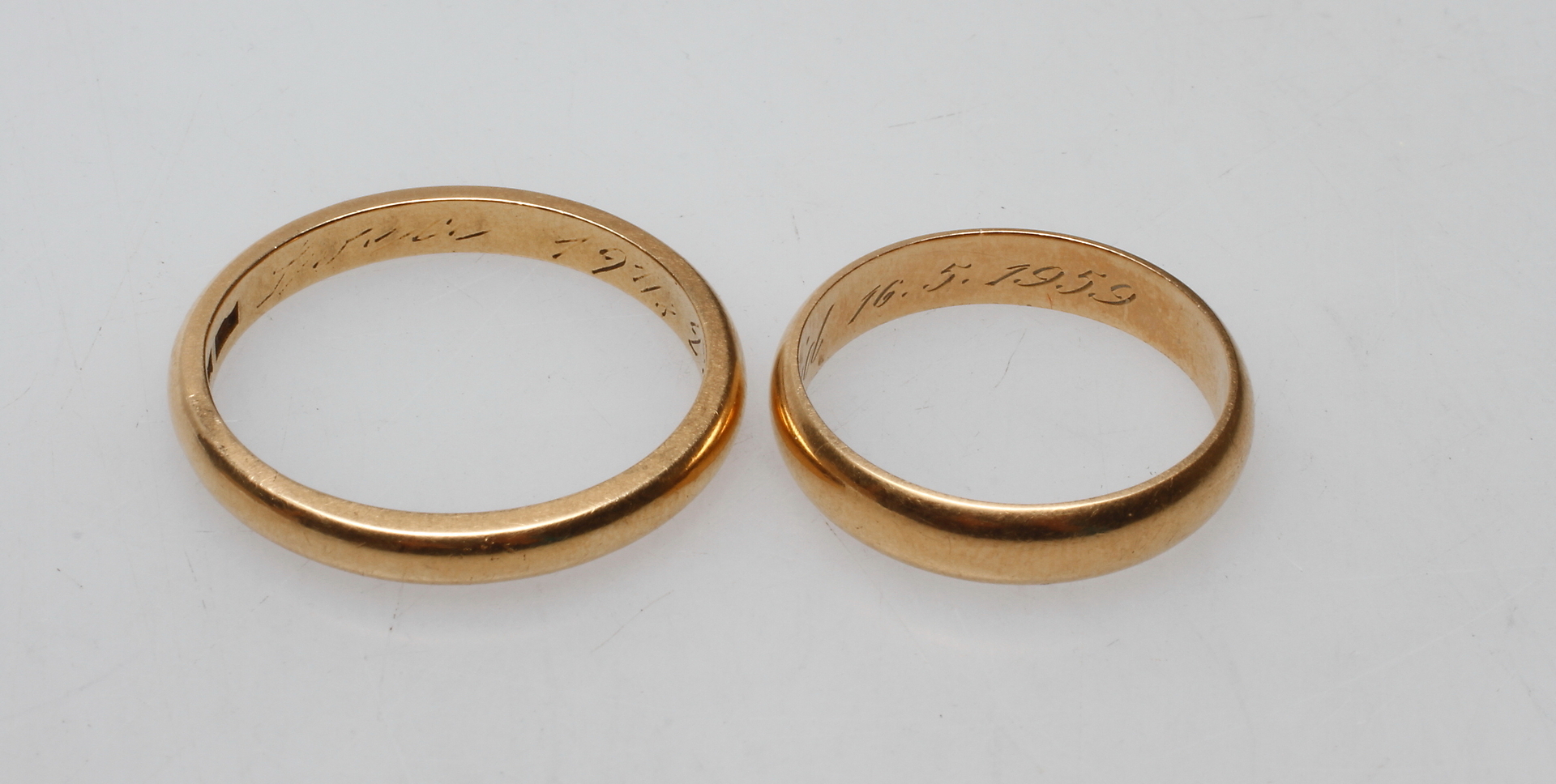 390661. RINGE, 2 stk, 18k guld, vægt ca. 11 gr.