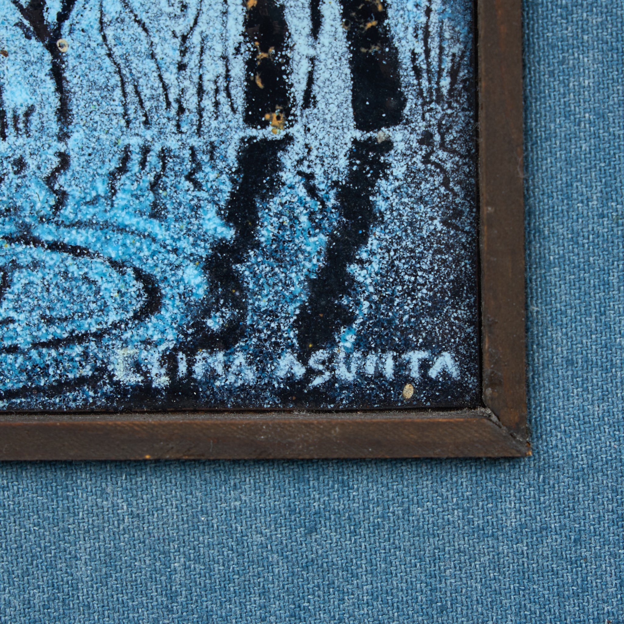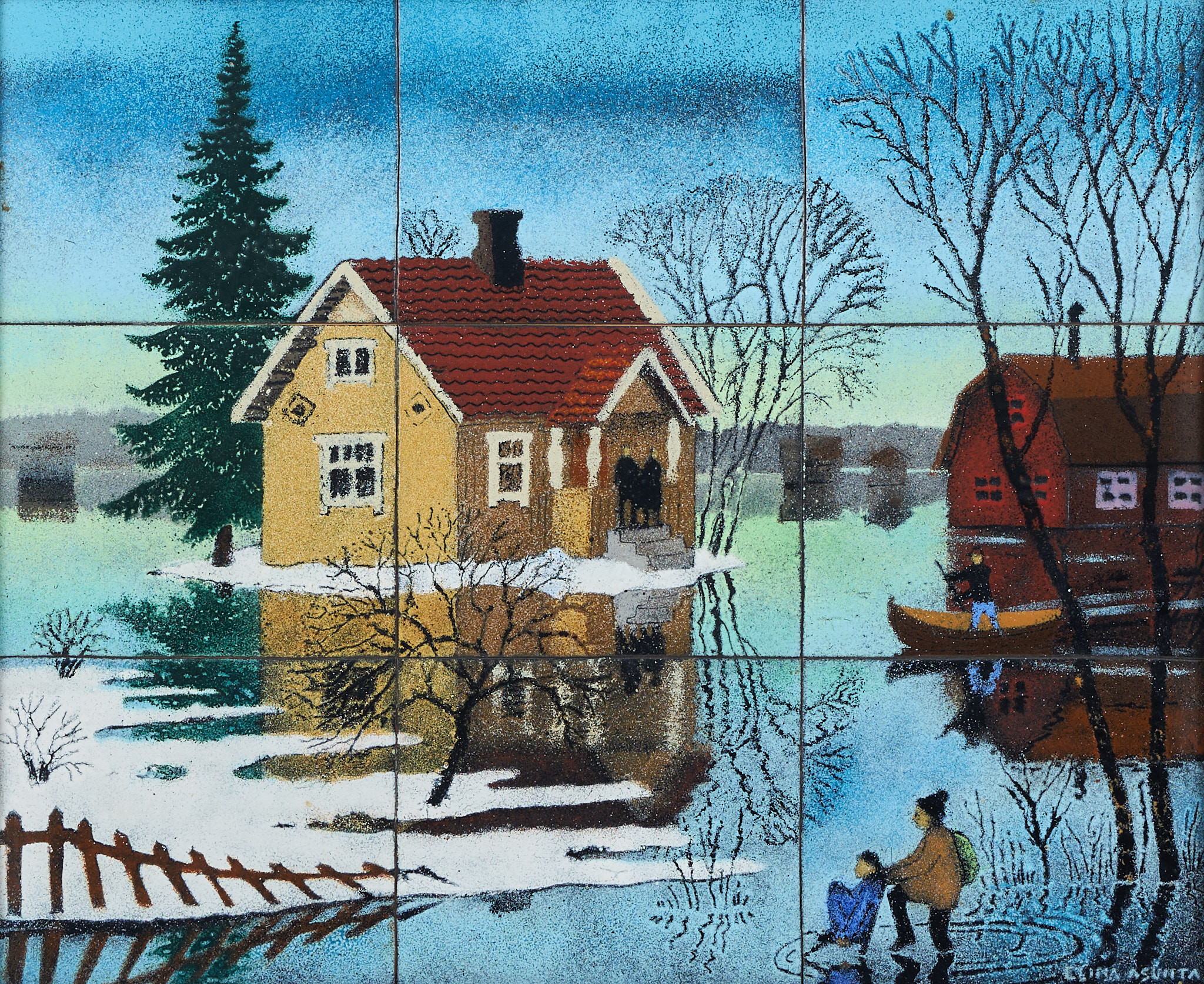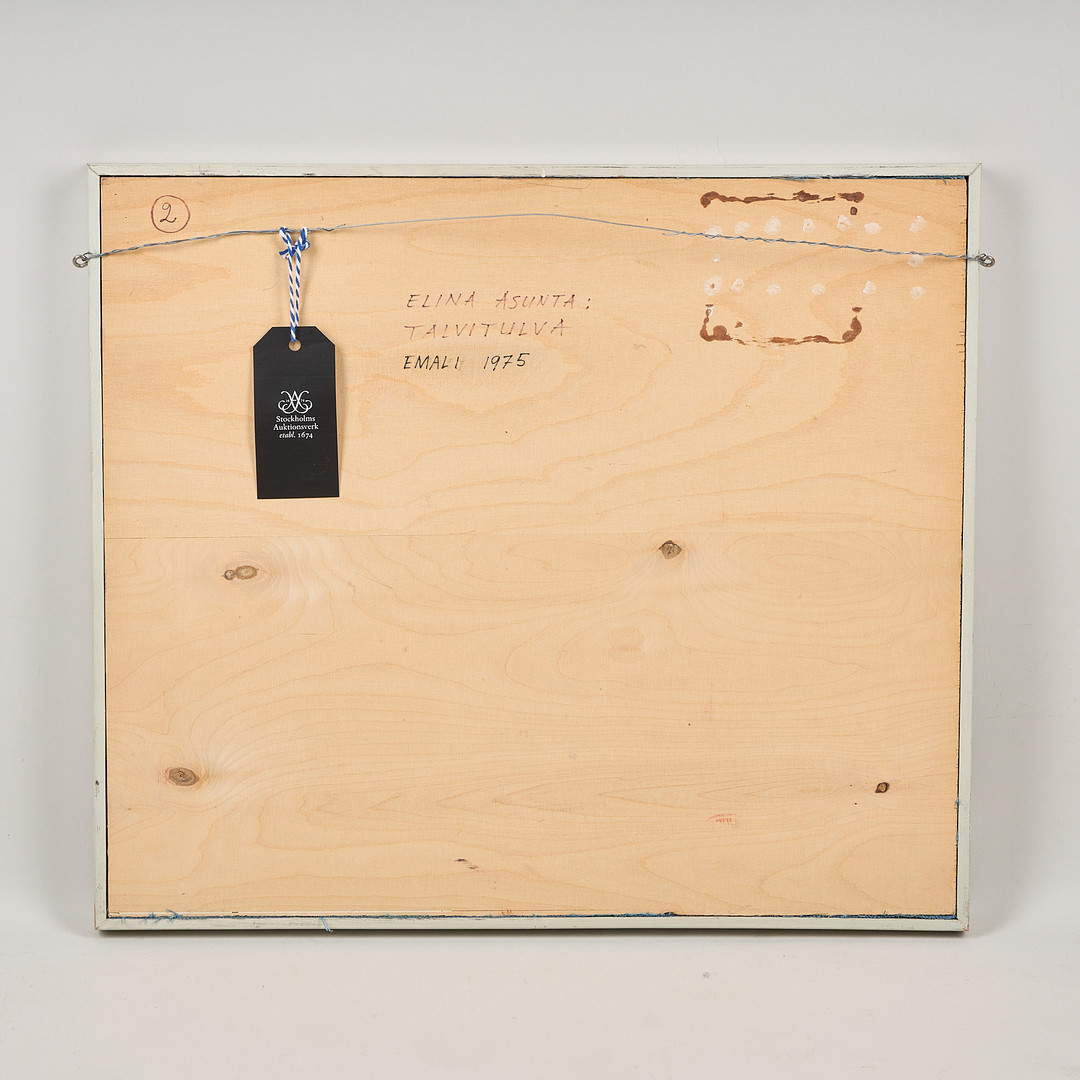 3907955. ELINA ASUNTA. „Vinteroversvømmelse“, signeret, emaljemaleri.