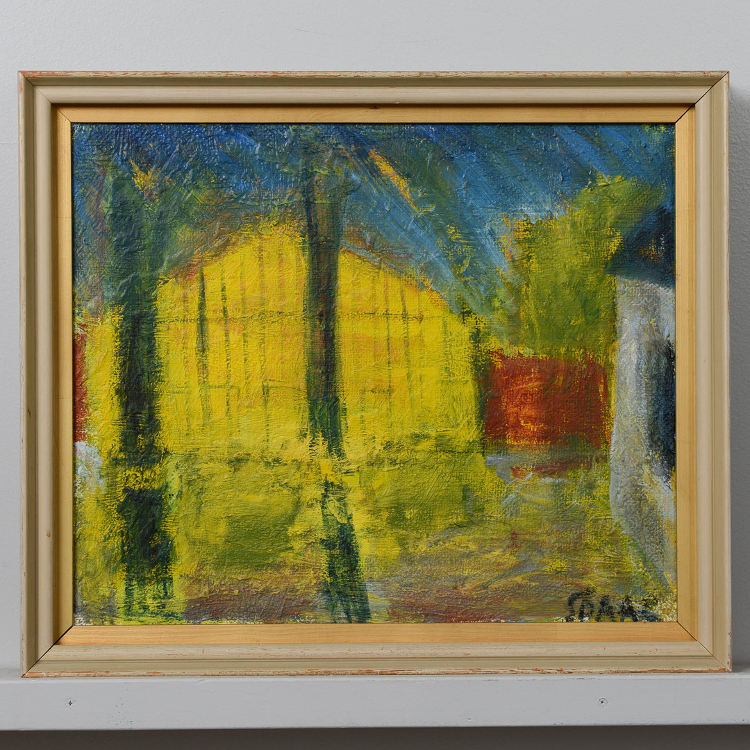 3914865. LARS SPAAK. Husfacade, olie på lærred, signeret.