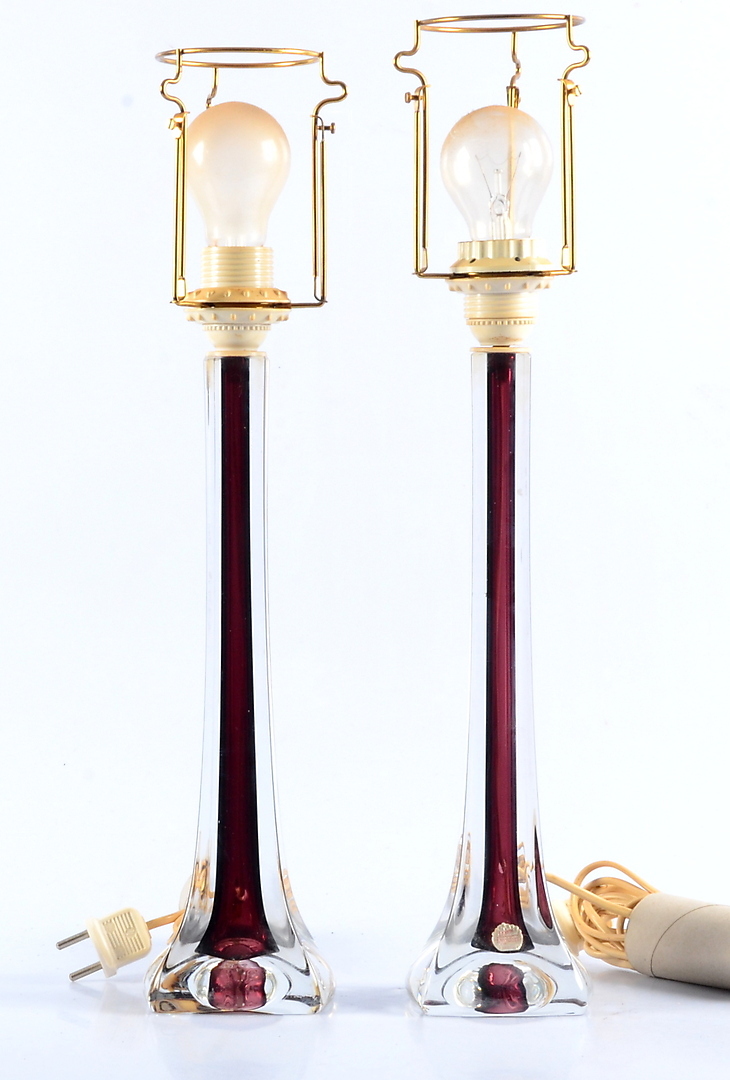391870. BORDLAMPER, et par, glas, Flygsfors.