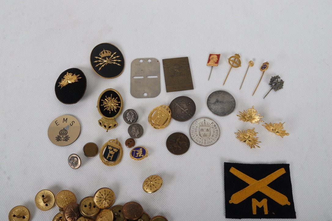 3925518. MILITÆRE KNAPPER, medaljer, i æske.