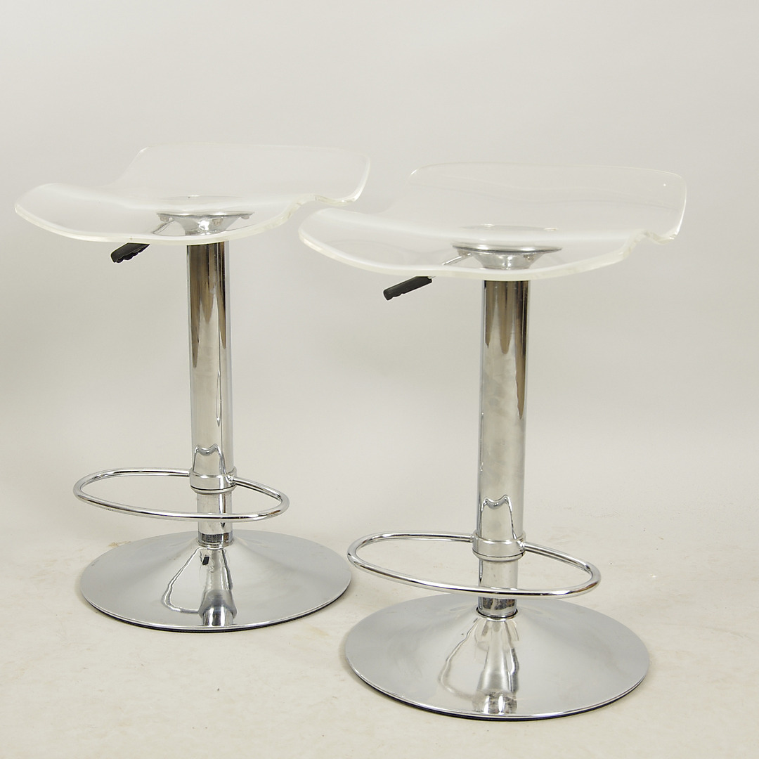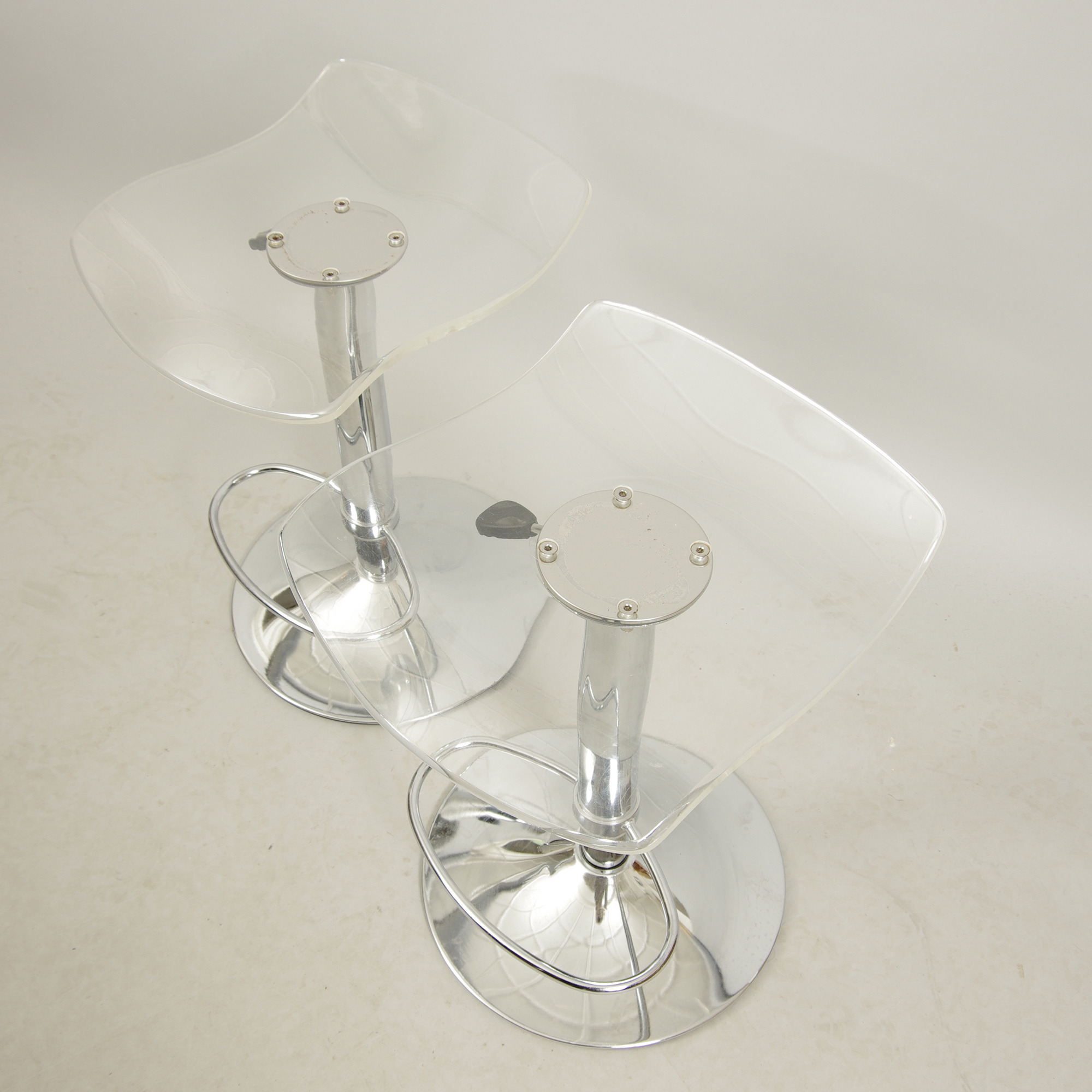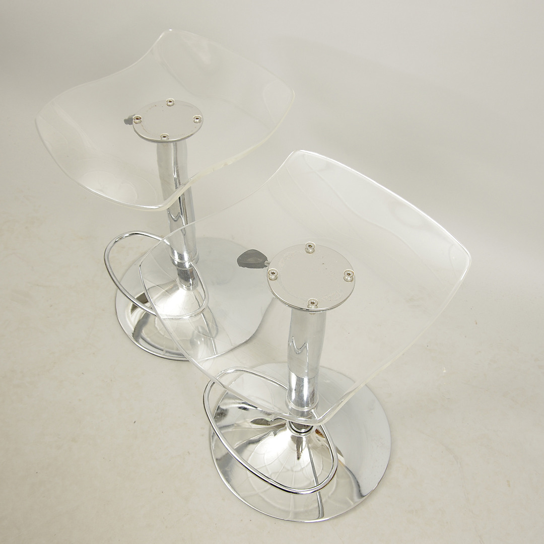 393029. BARSTOOLS, 1 par, plast/krom base, slutningen af 1900-tallet.
