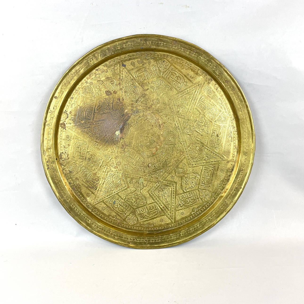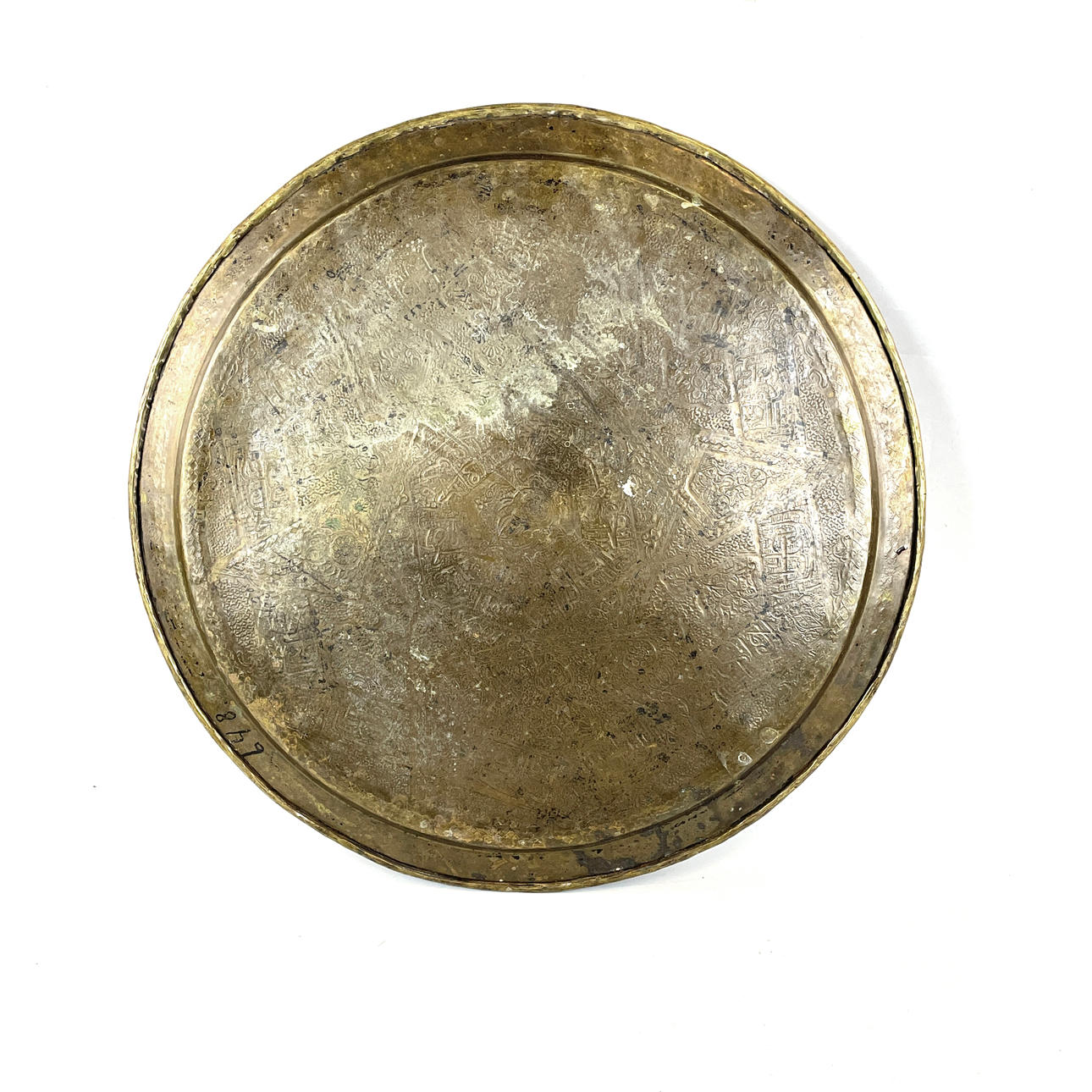 Brugsslitage, pletter og mærker på messingskiven, buler.
