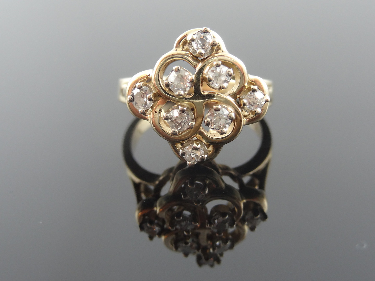 393347. Antigue SQUARE DESIGN DIAMANT 14k guld 0,45ct.