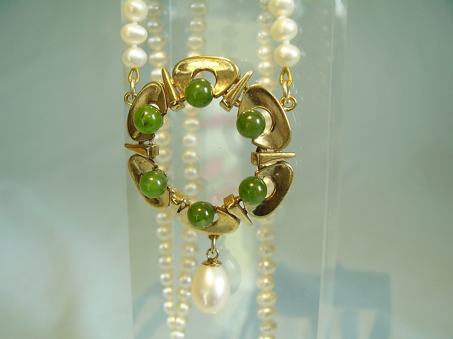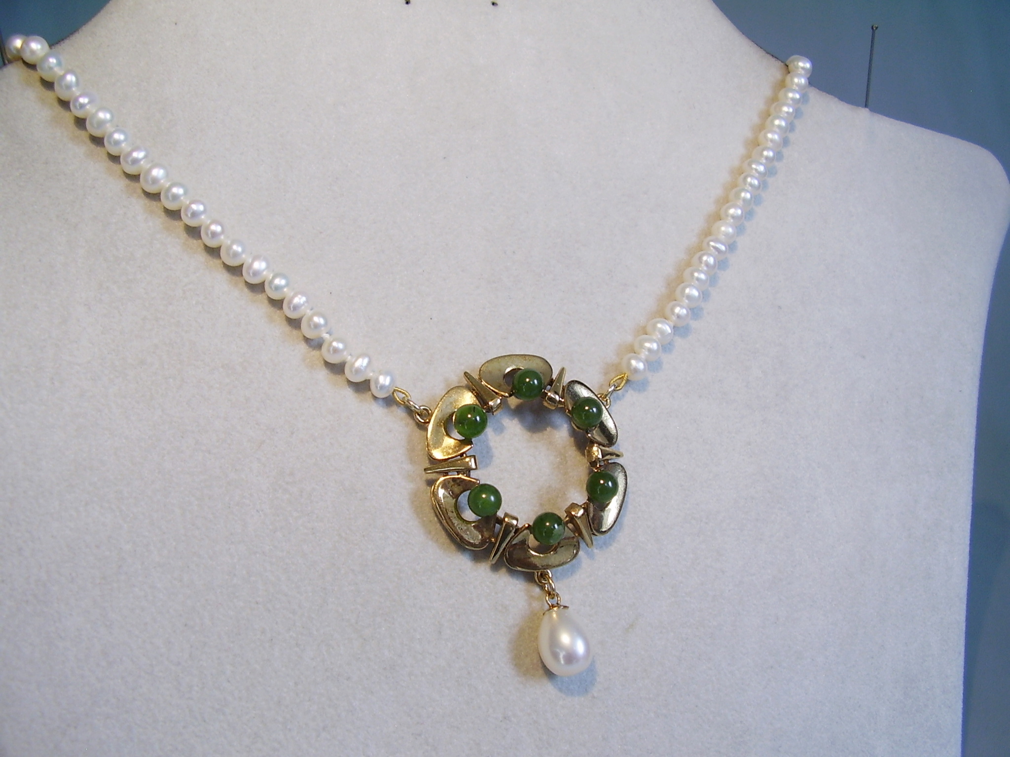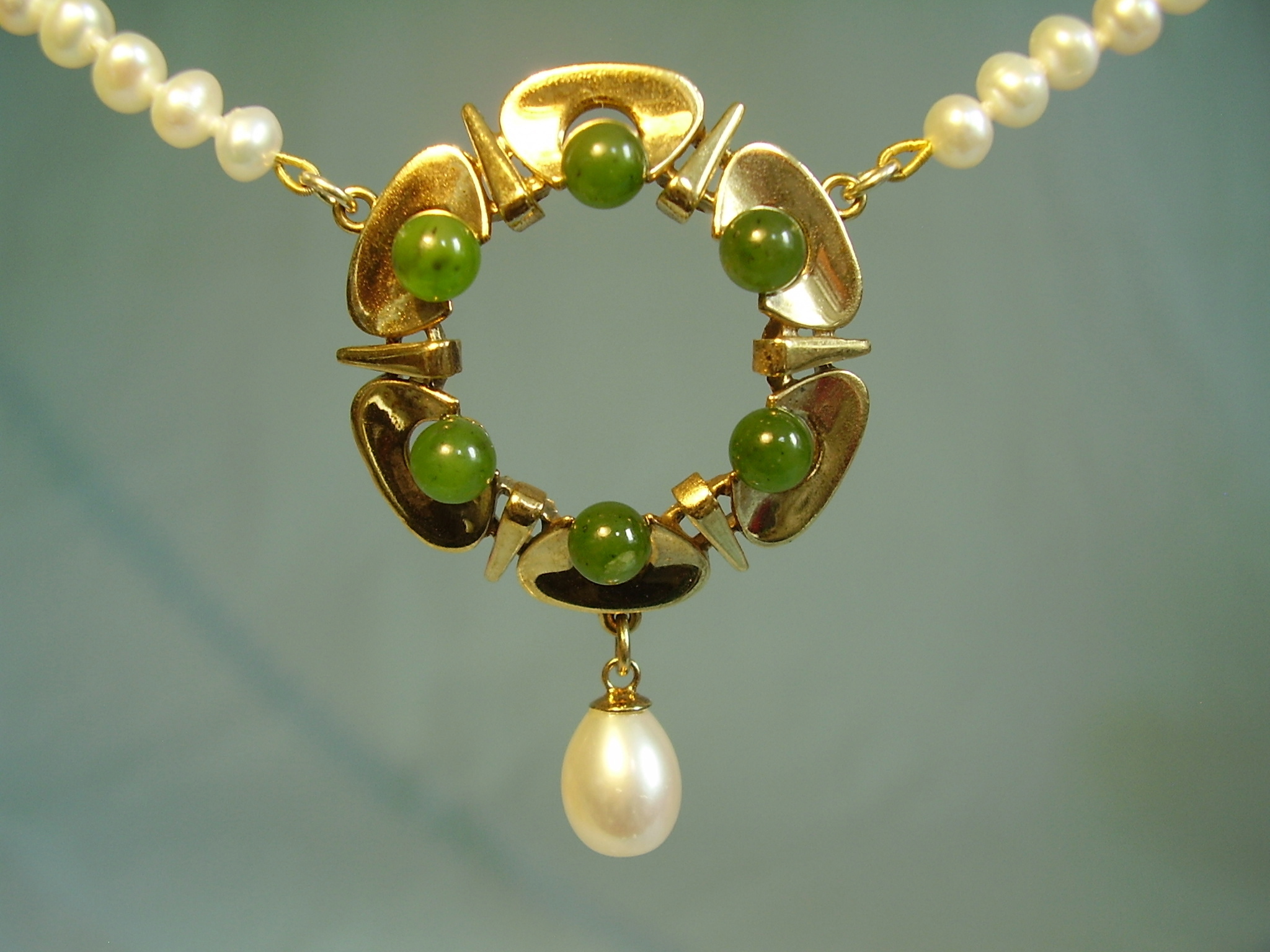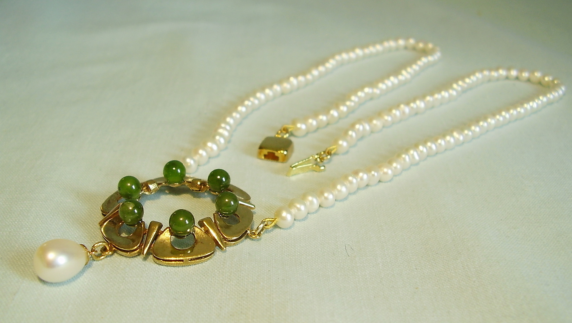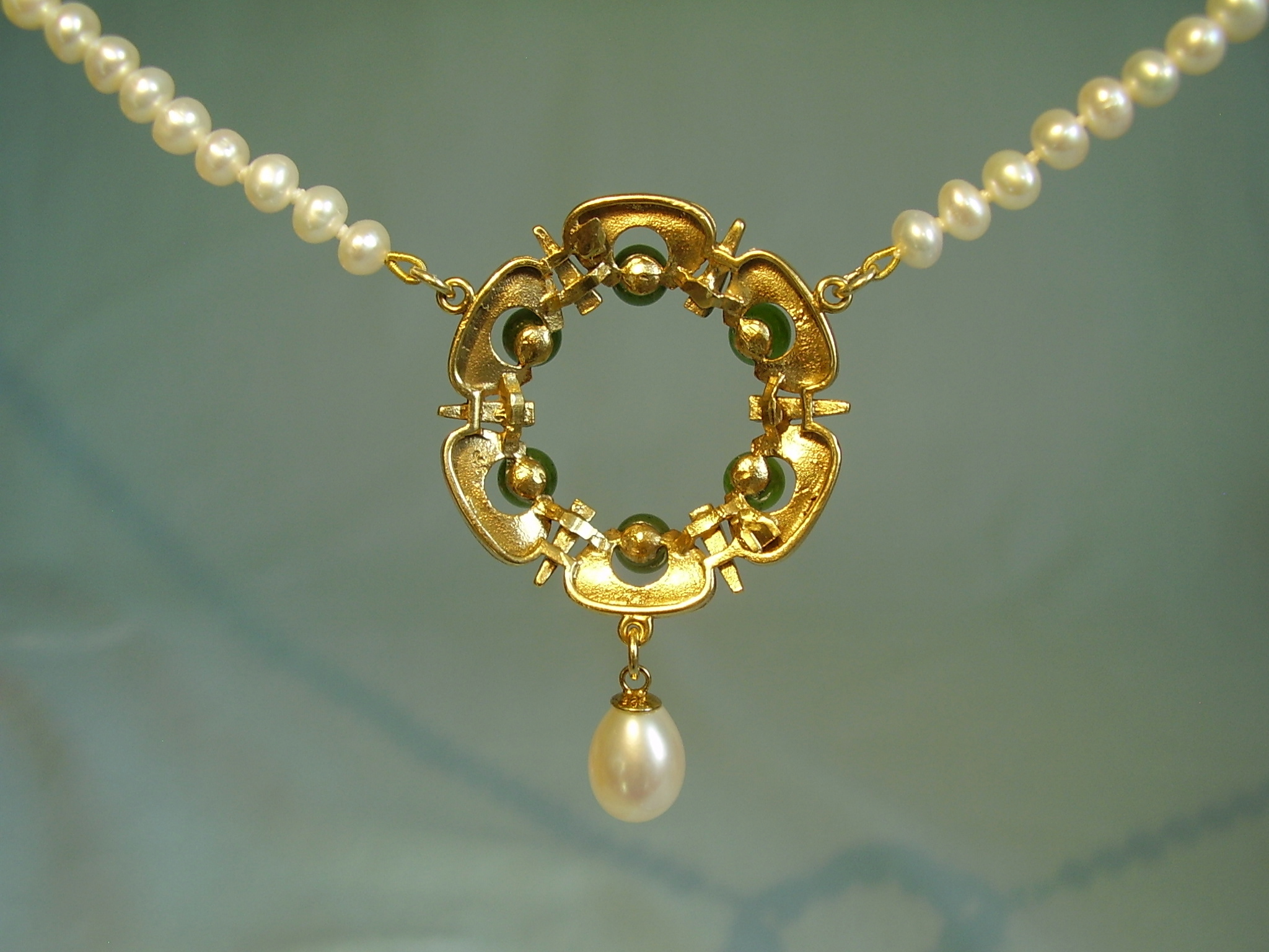 393569. JADE PERLE HALSKÆDE Sølv 935 forgyldt.