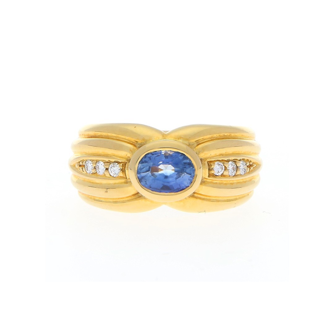 393675. RING i 750 gult guld med oval safir.