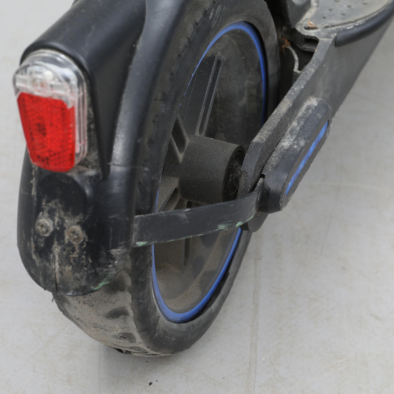 Brugsslitage og beskadigelse af dæk. Se billede. Funktionstestet, virker.
