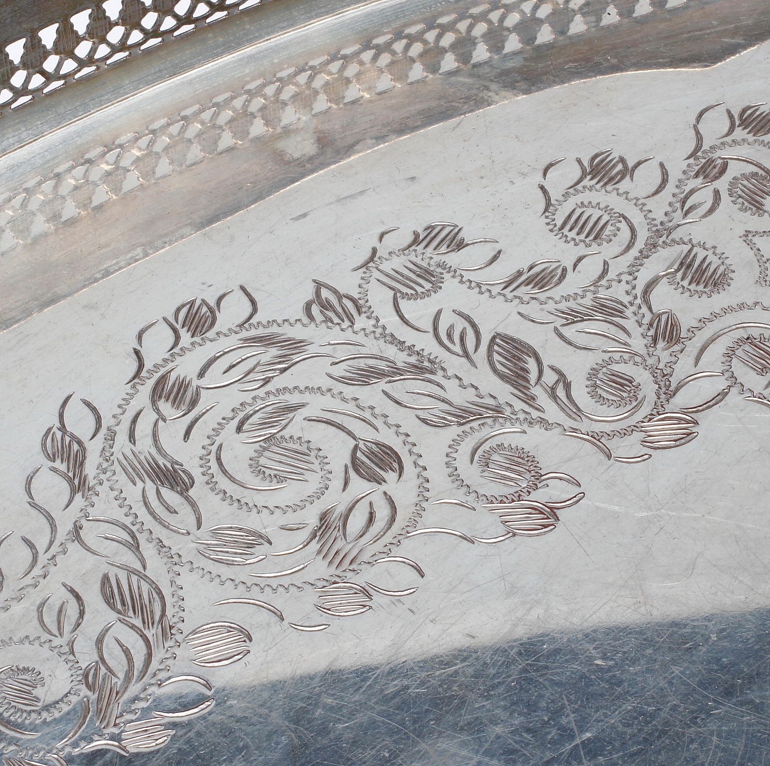 393920. SERVERBAKKE, forsølvet kobber, England, 1900-tallet.