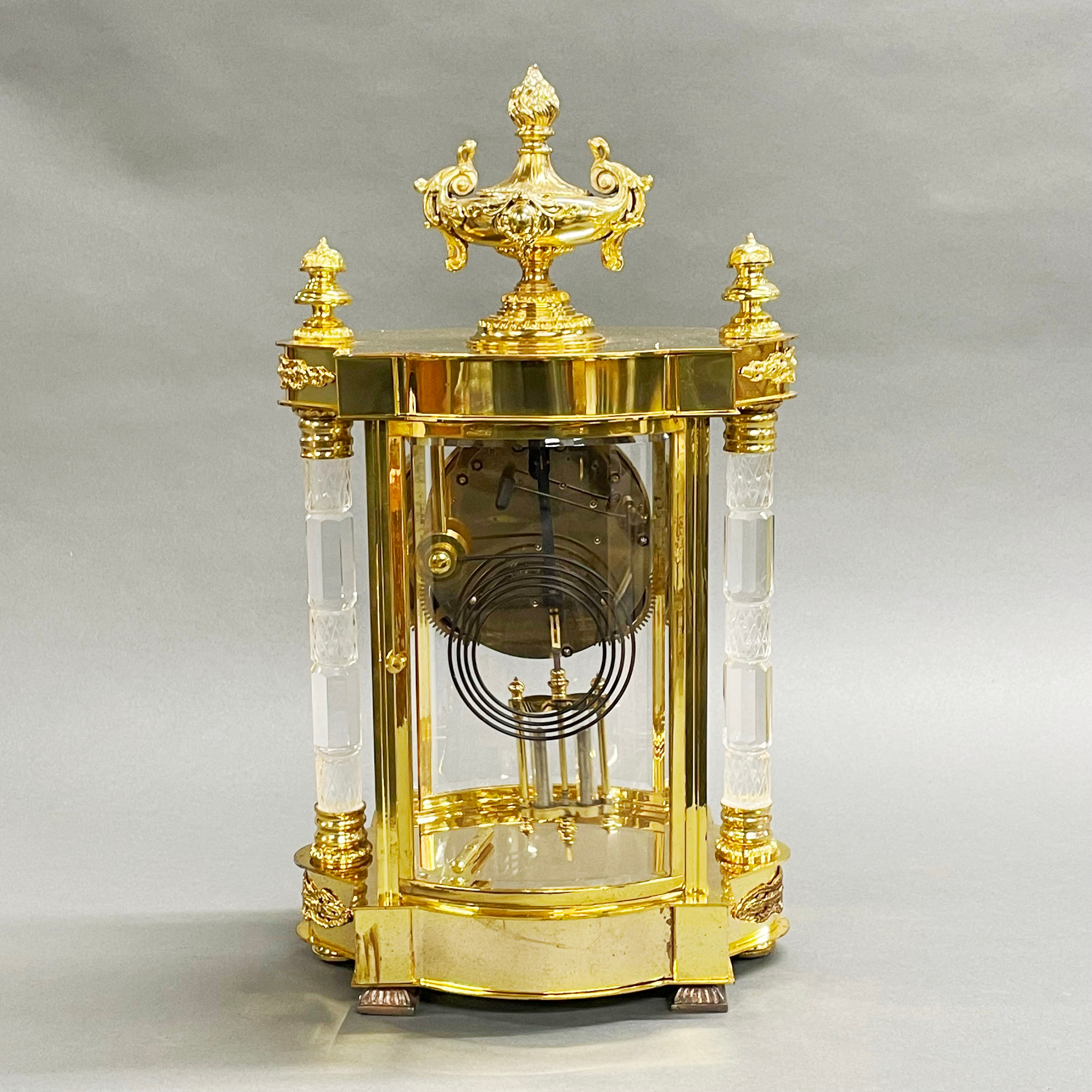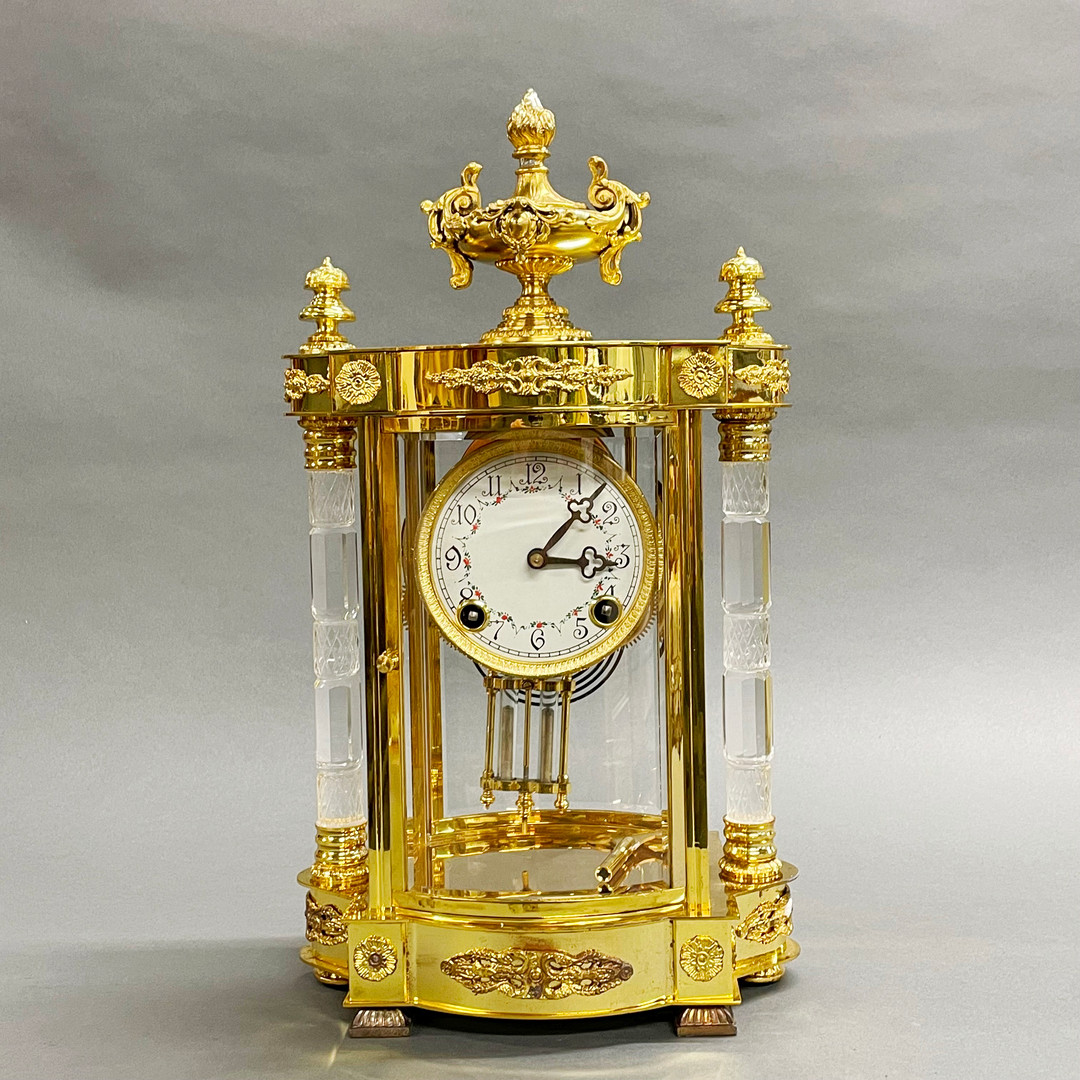 3941772. FORGYLDT OG KRYSTALSLÅENDE MANTELUR.