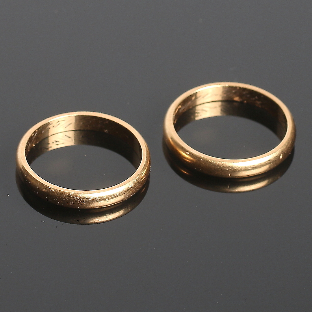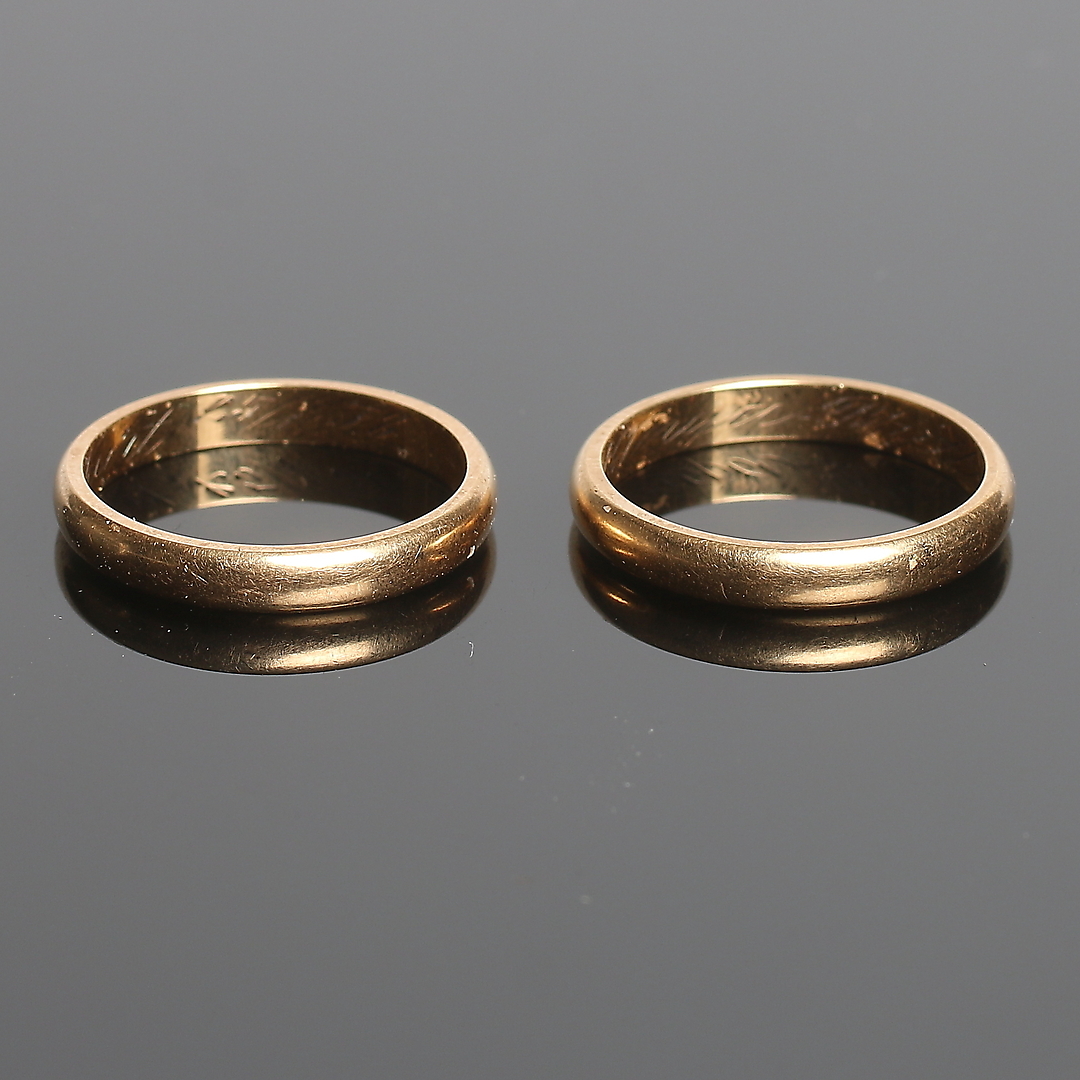 394345. RINGE, 2 stk, 18k guld. 1954 Vægt 7 gram.