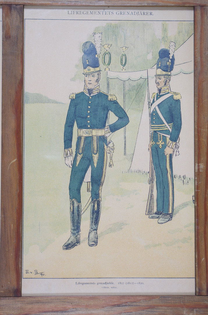 39456. Motiv med militæruniformer, 8 stk., tryk.