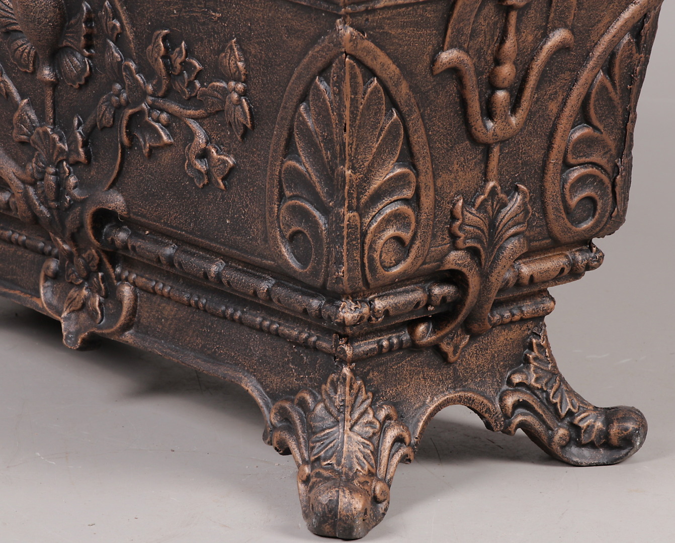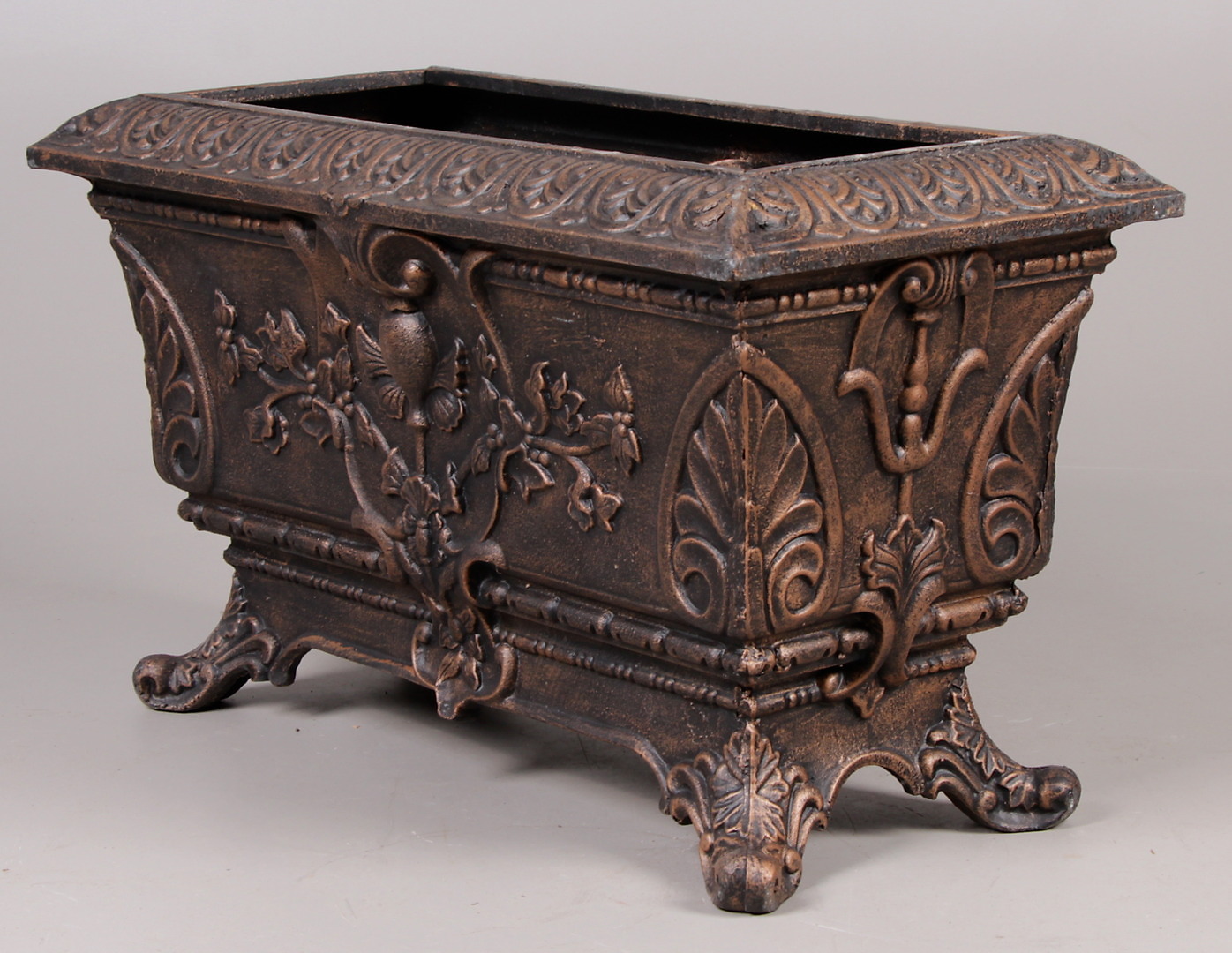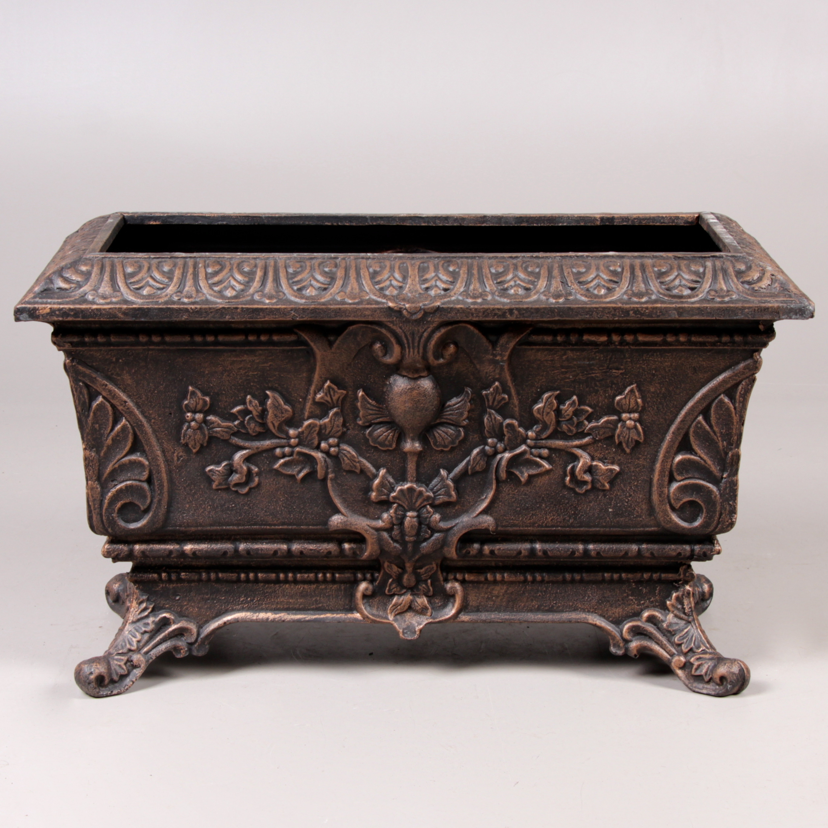 394698. BLOMSTERKASSE, støbejern, patineret, moderne.