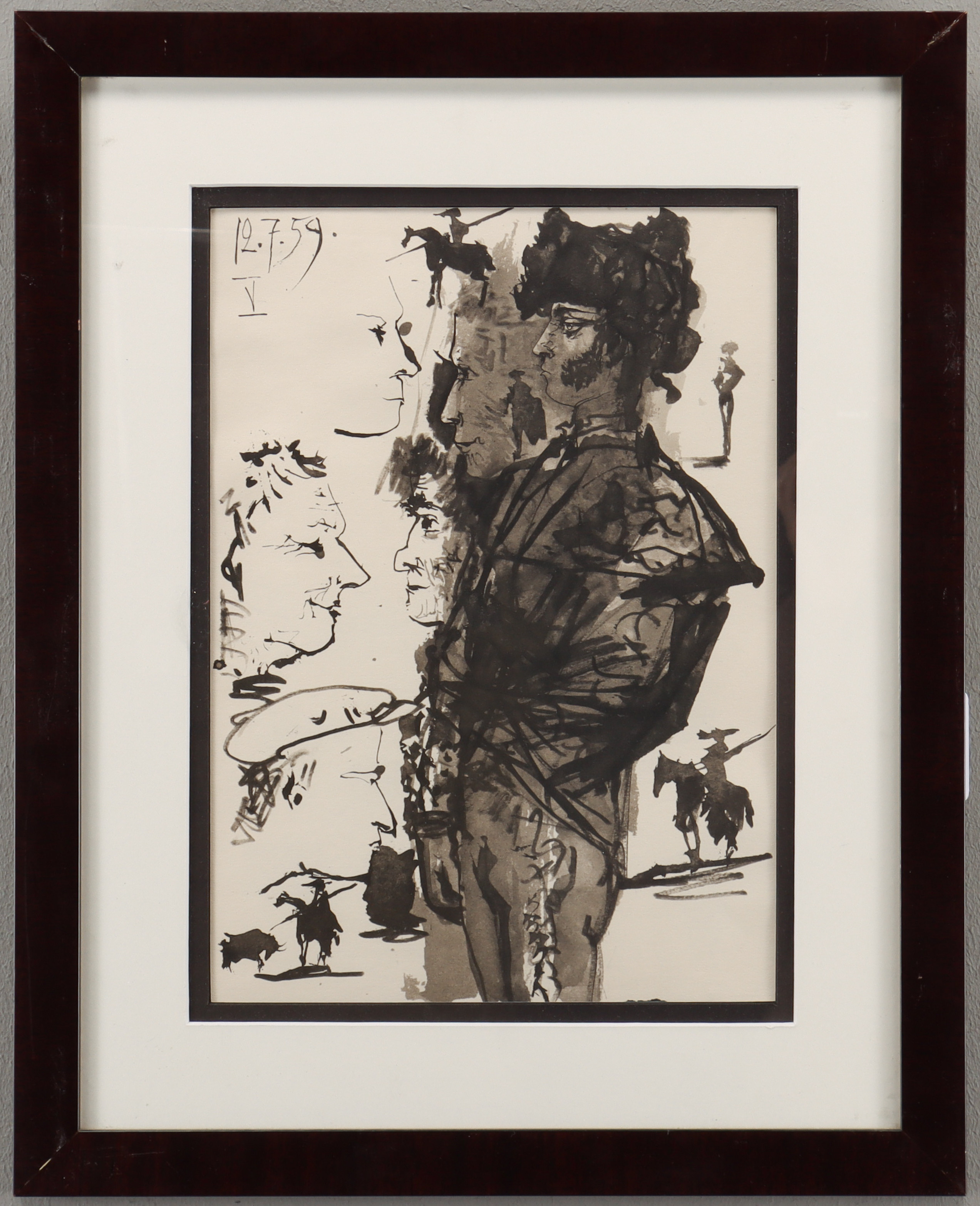 3952154. PABLO PICASSO. EFTER. Offsettryk efter grafikark fra „Toros y Toreros“.