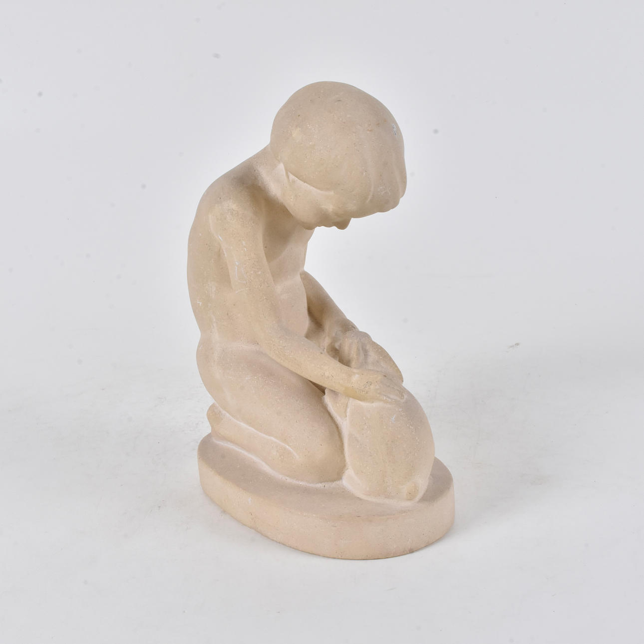 Dreng med kanin. Signeret. Højde 22,5 cm.