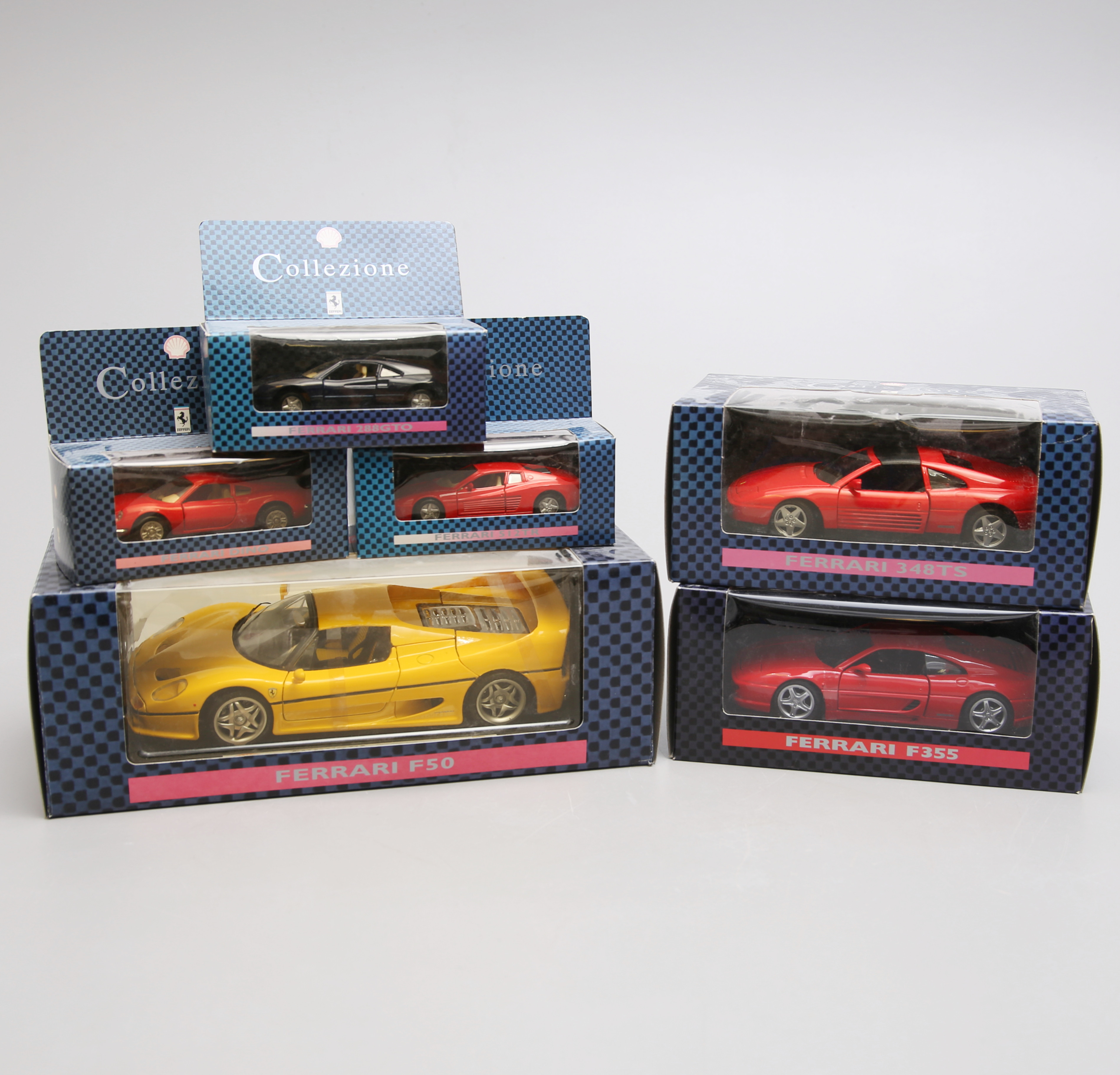 3956541. Et sæt med 6 modelbiler, Ferrari, Shell Collezione.