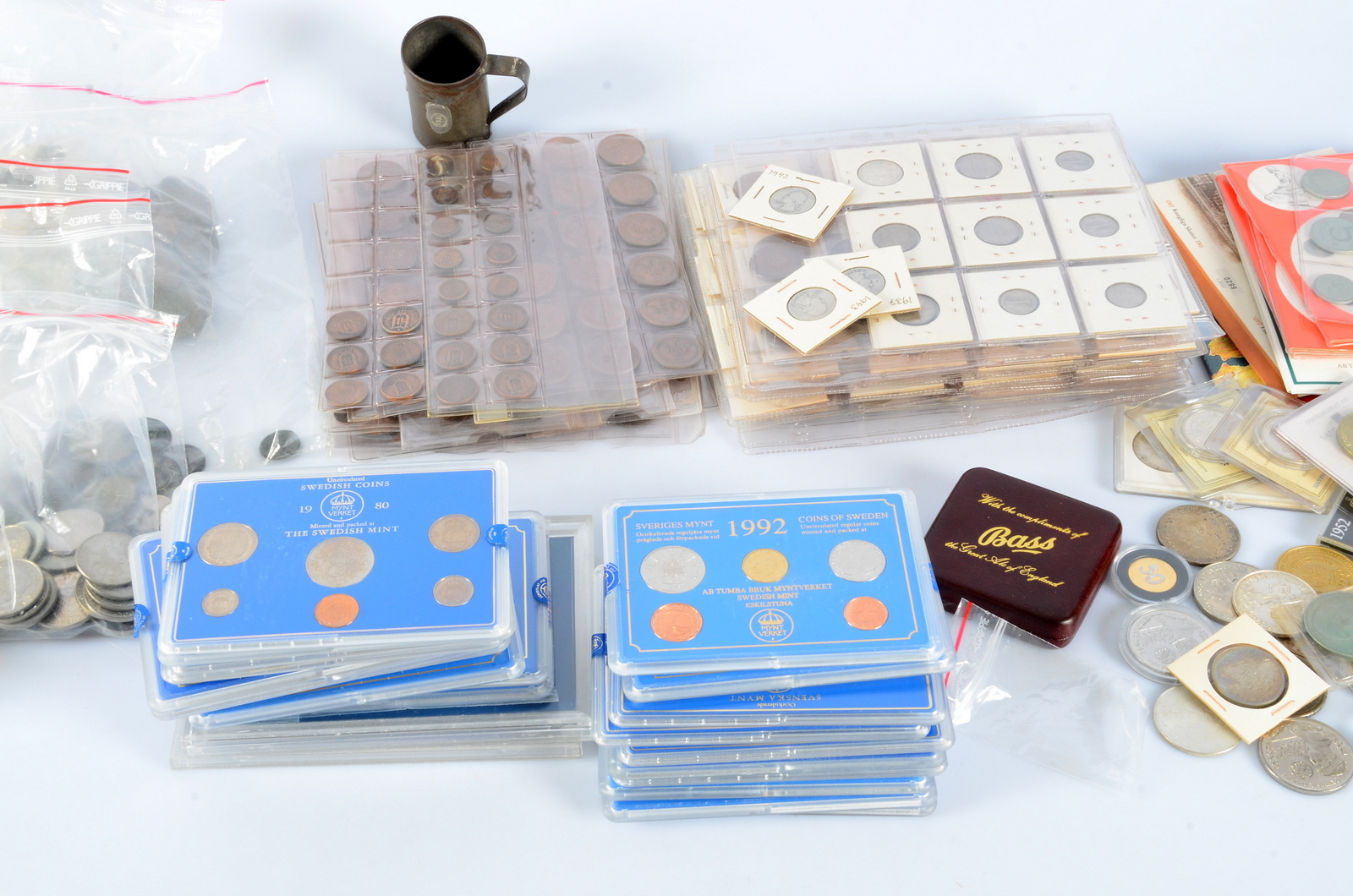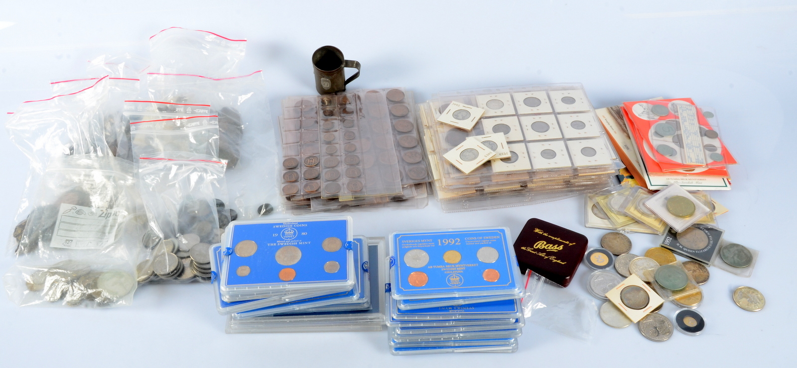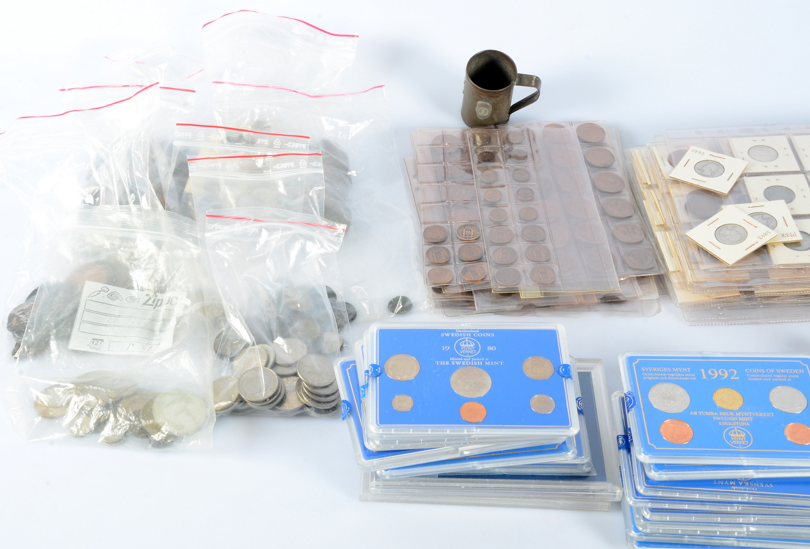 395720. STØRRE SAMLING AF MØNTER, over hele verden.