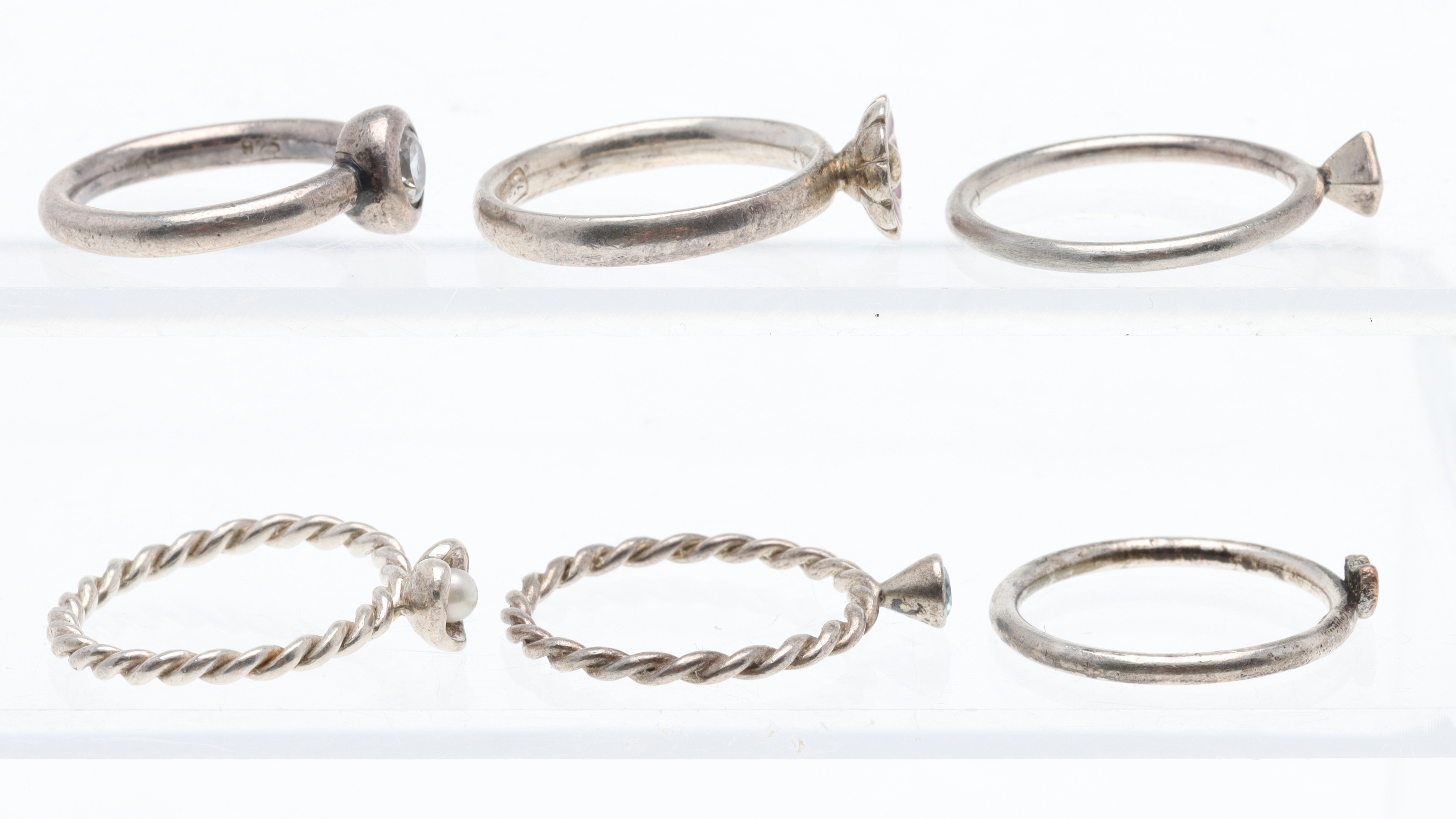 3959858. RINGE, 6 stk, sølv, bl.a. Spinding.
