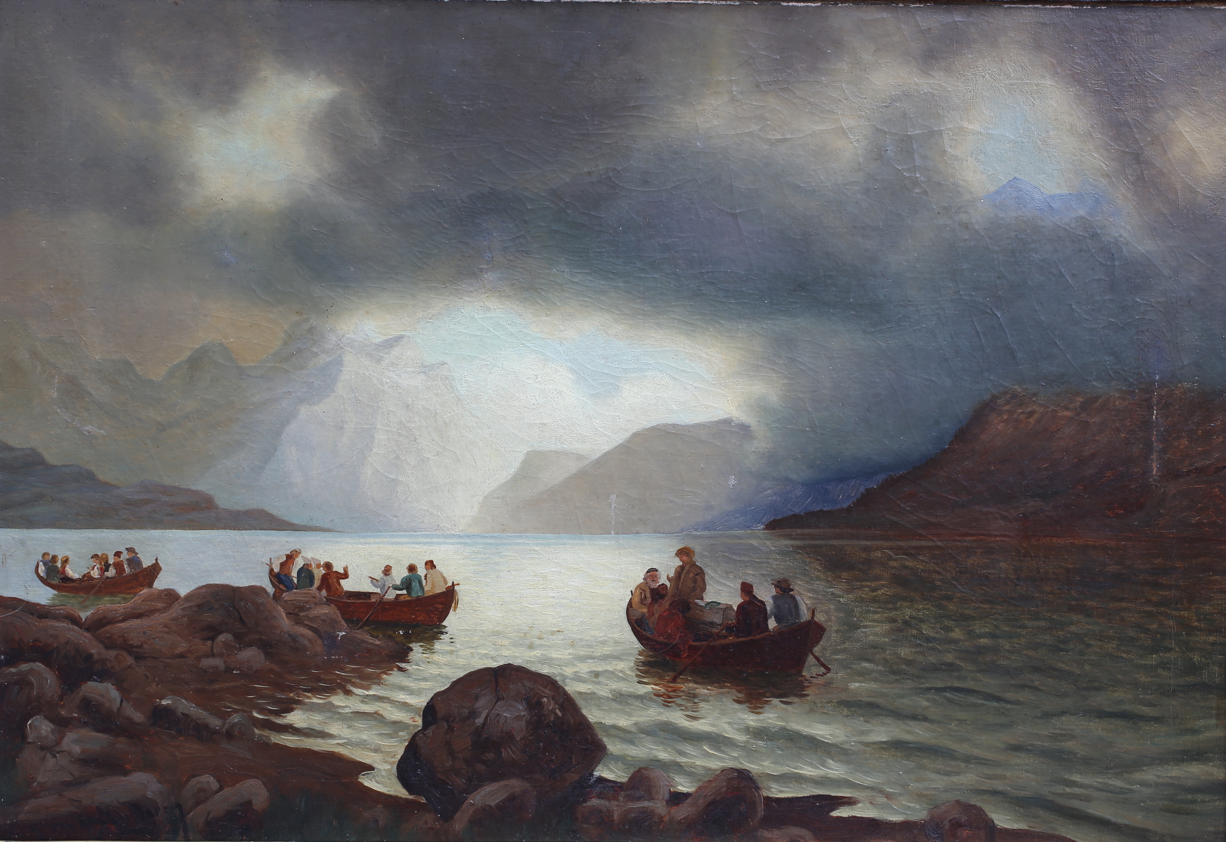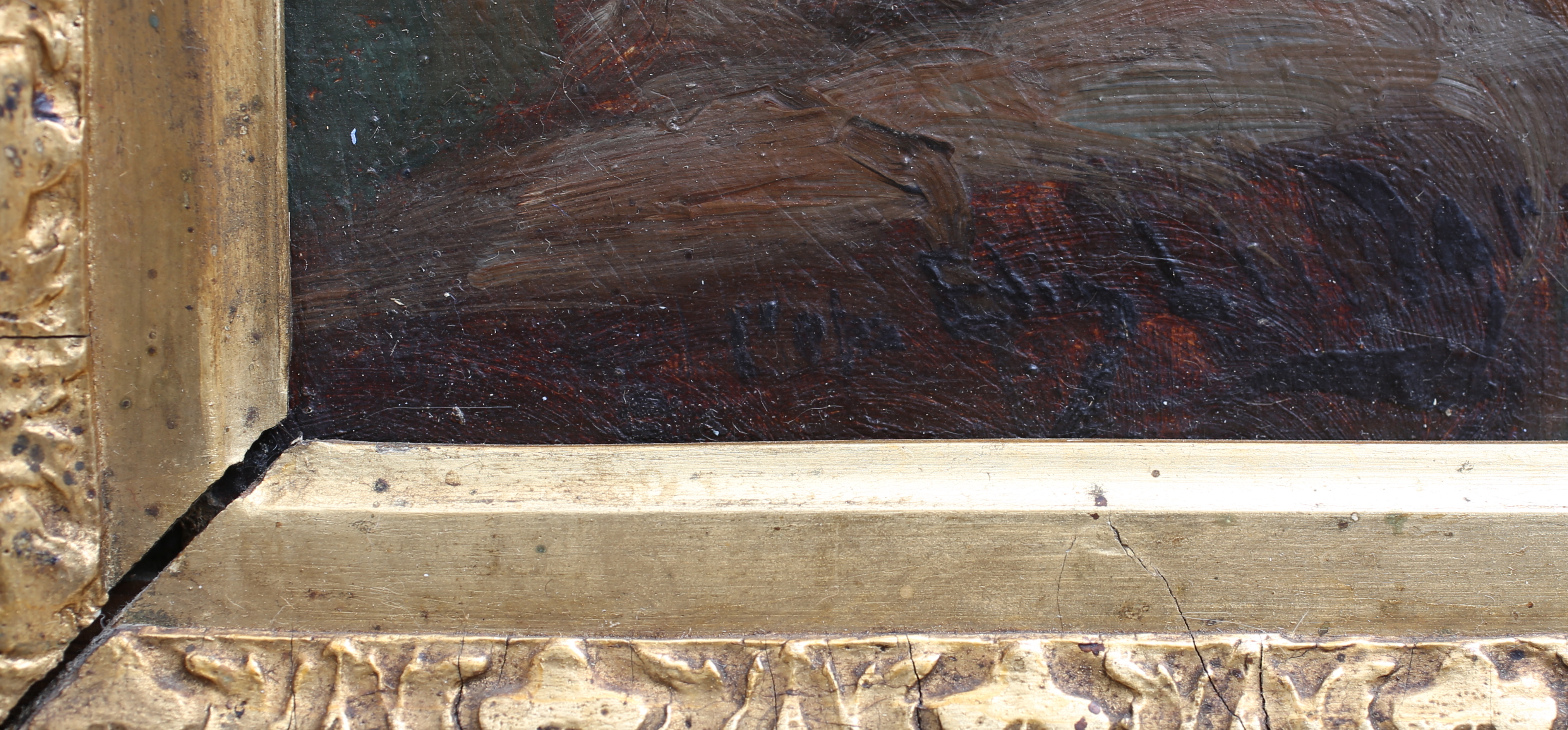 396496. ELIS LINDGREN. Strisser efter. Olie på limet lærred.