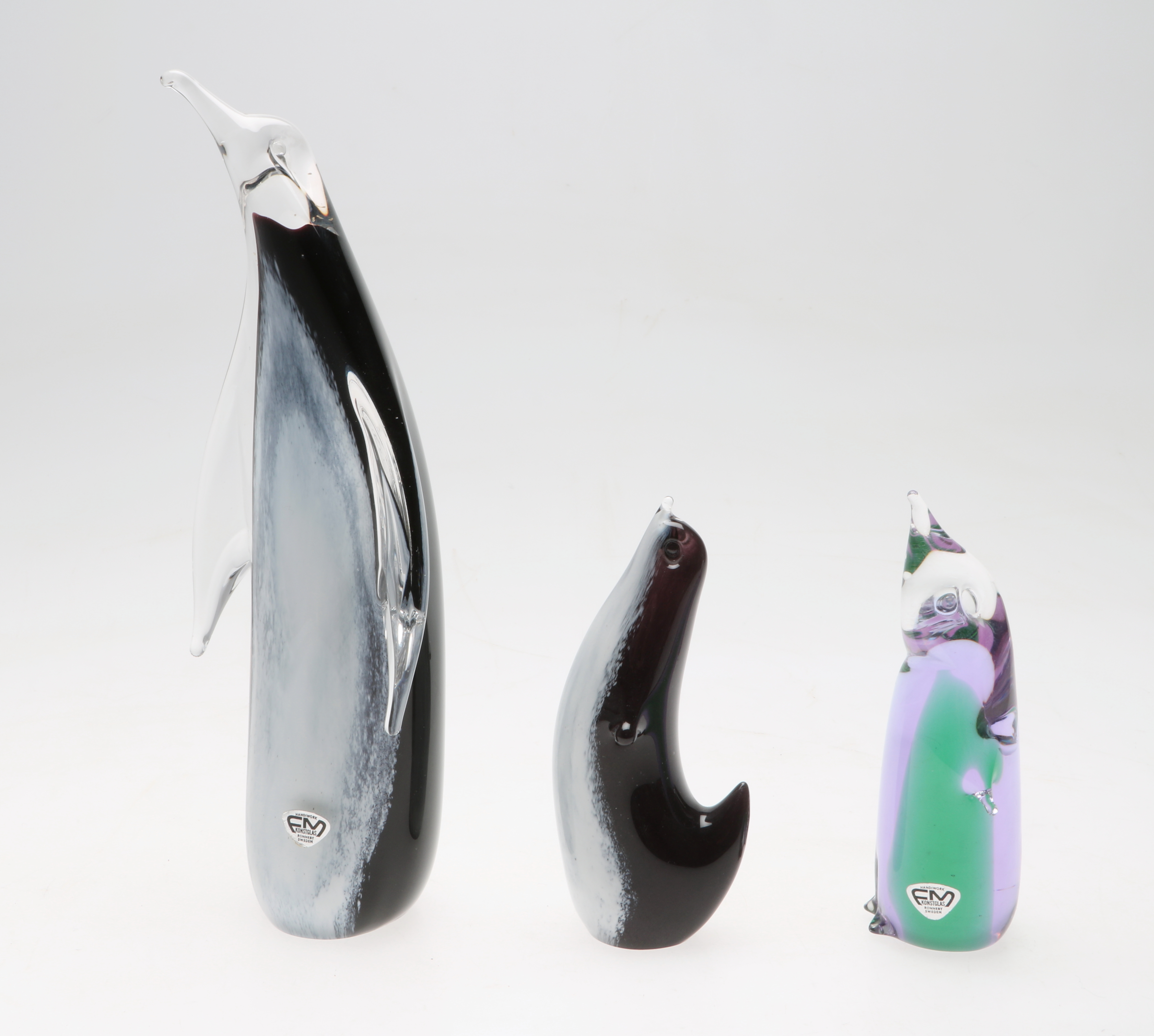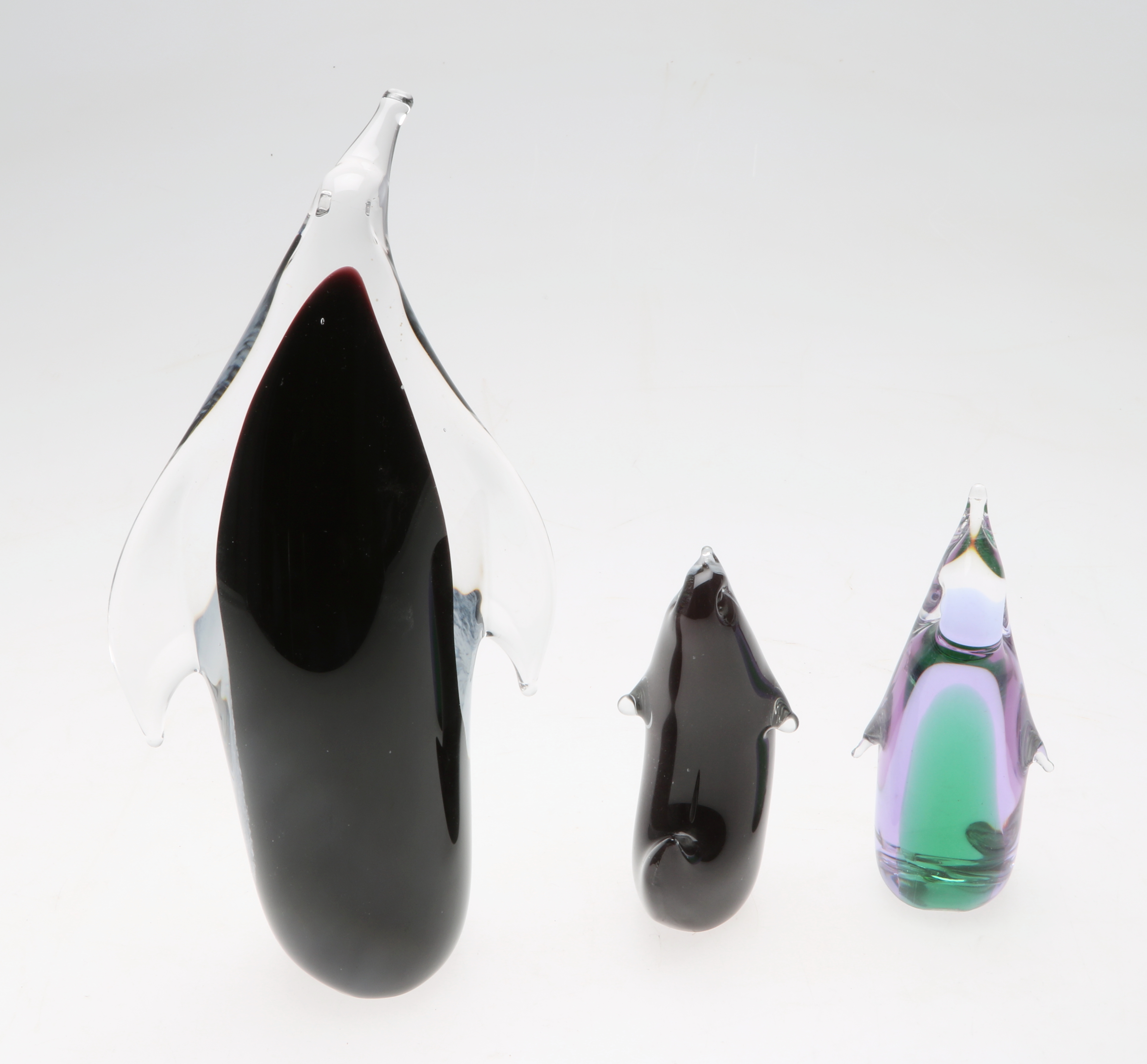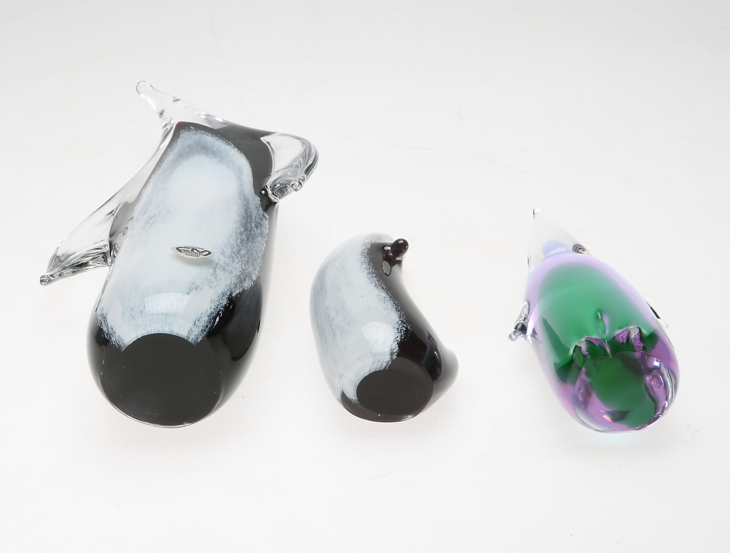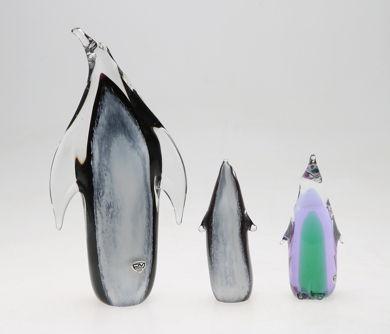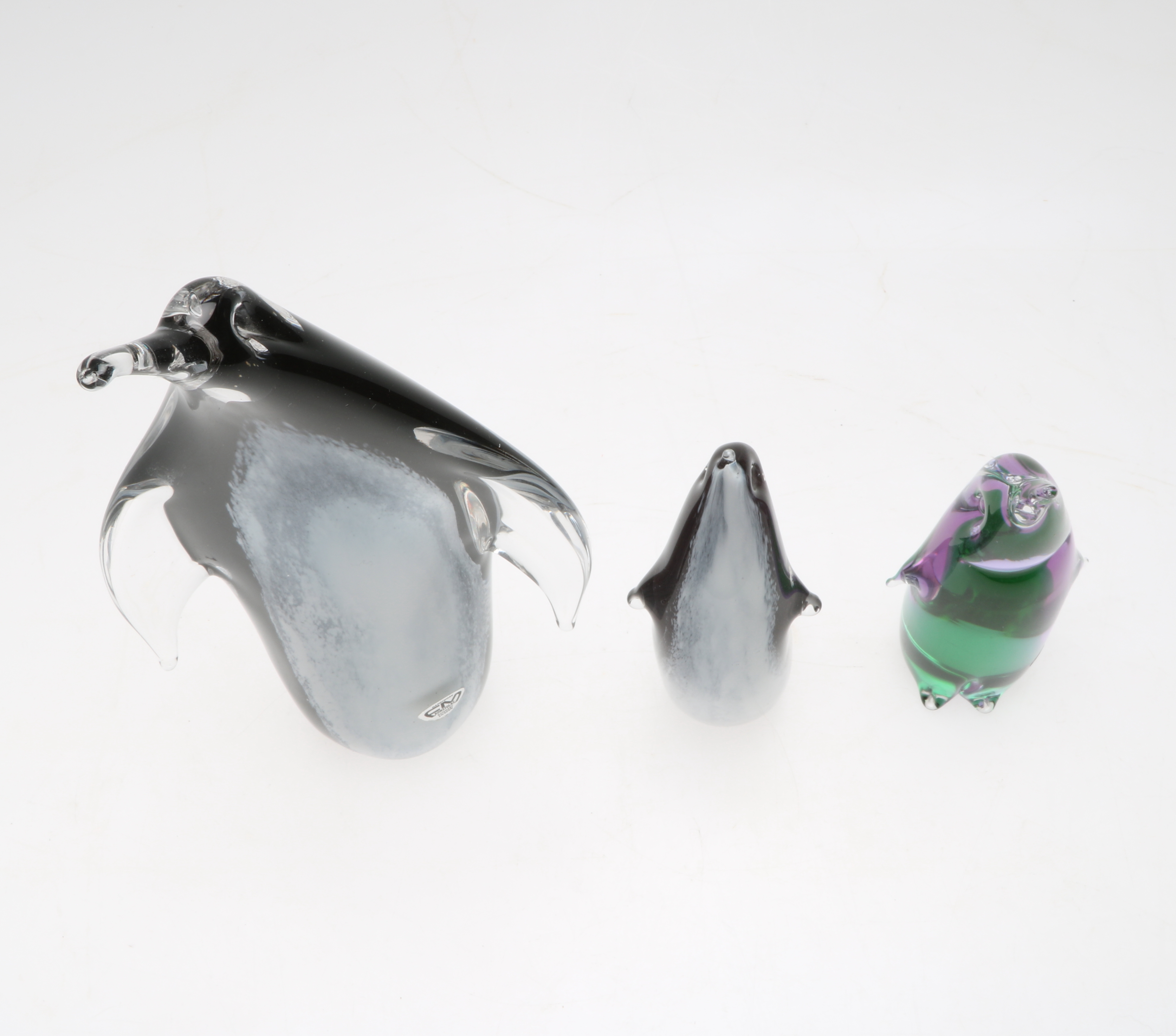 396579. KUNSTGLAS, 3 stk, Pingviner, FM Ronneby.