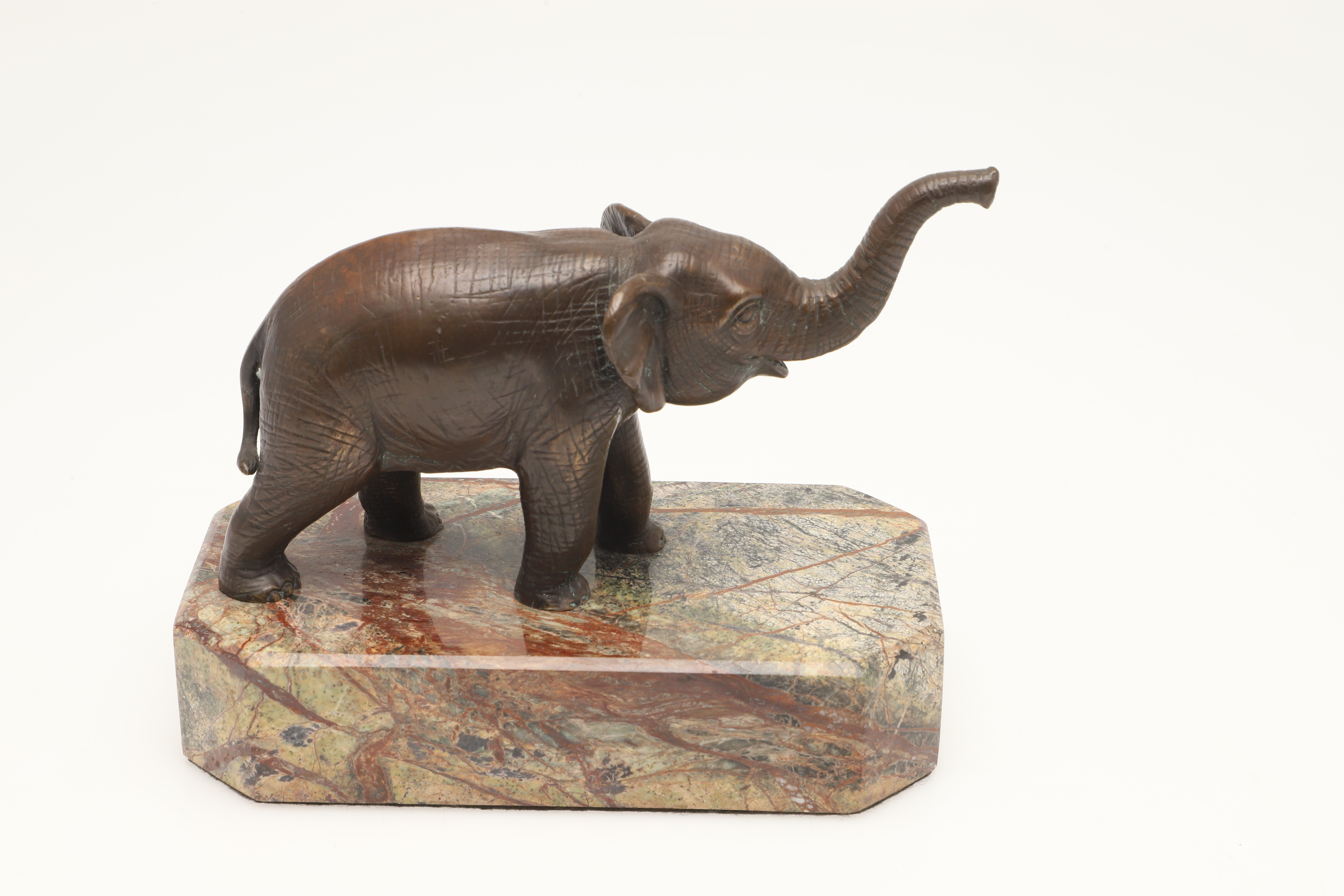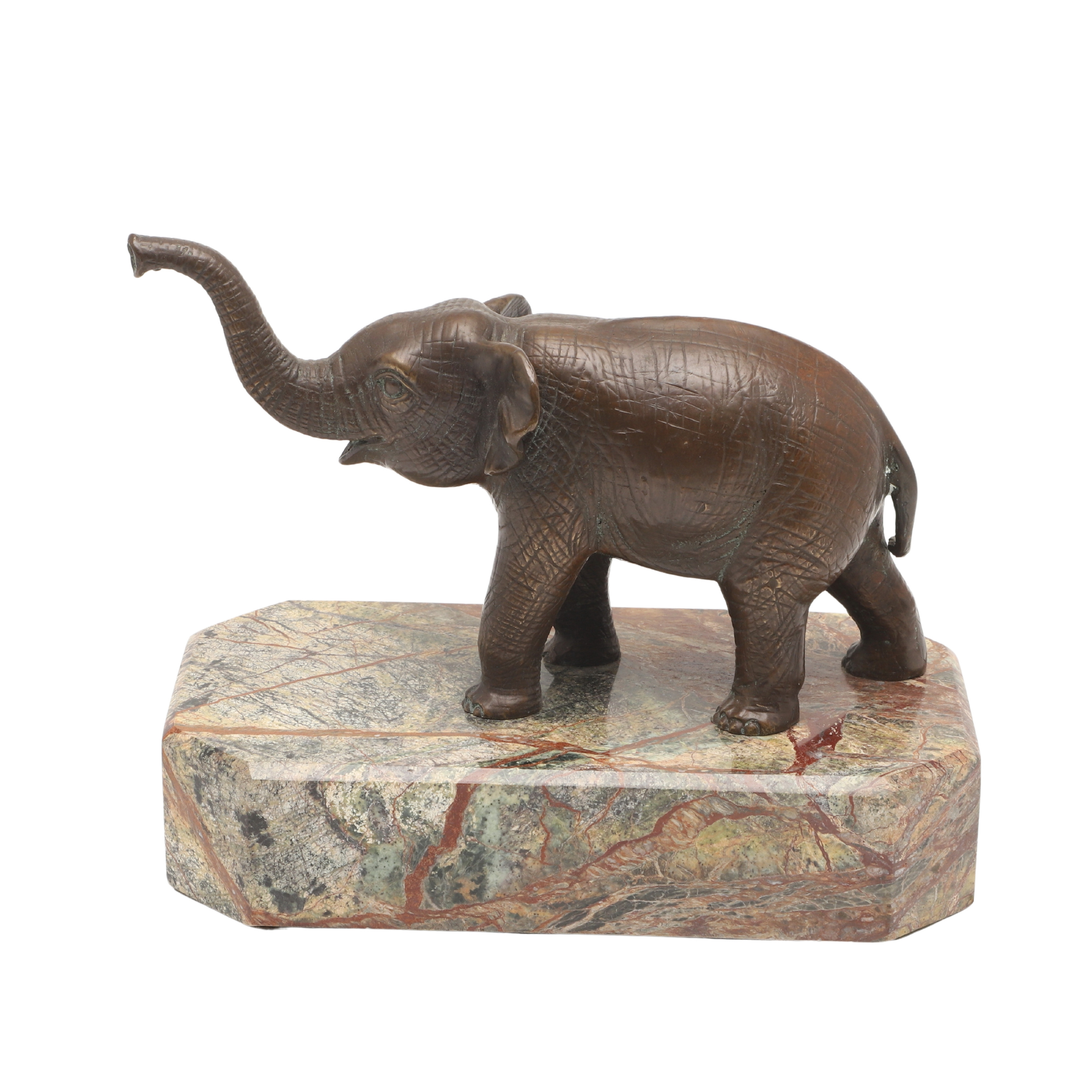 3966628. THEODORE ALEXANDER - BRONZE ELEFANT & MARMOR SOKKEL.