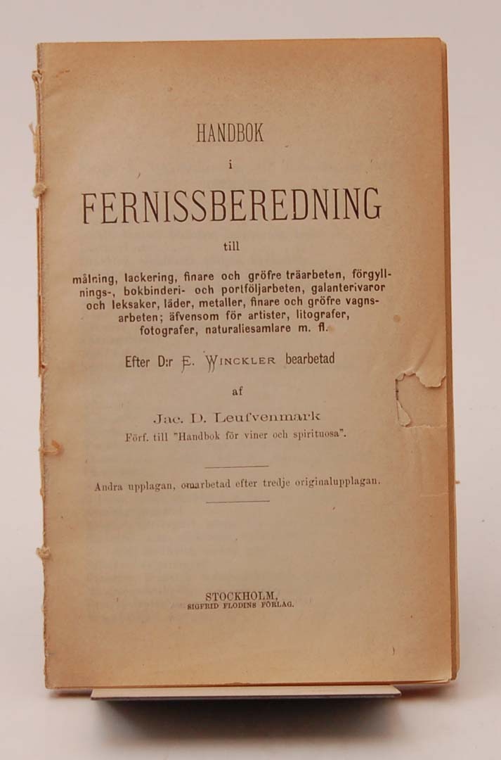 396970. LEUFVENMARK, JAC. D. Håndbog i lakforberedelse 1884.