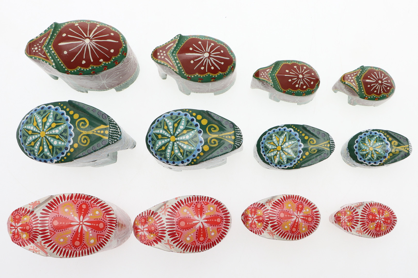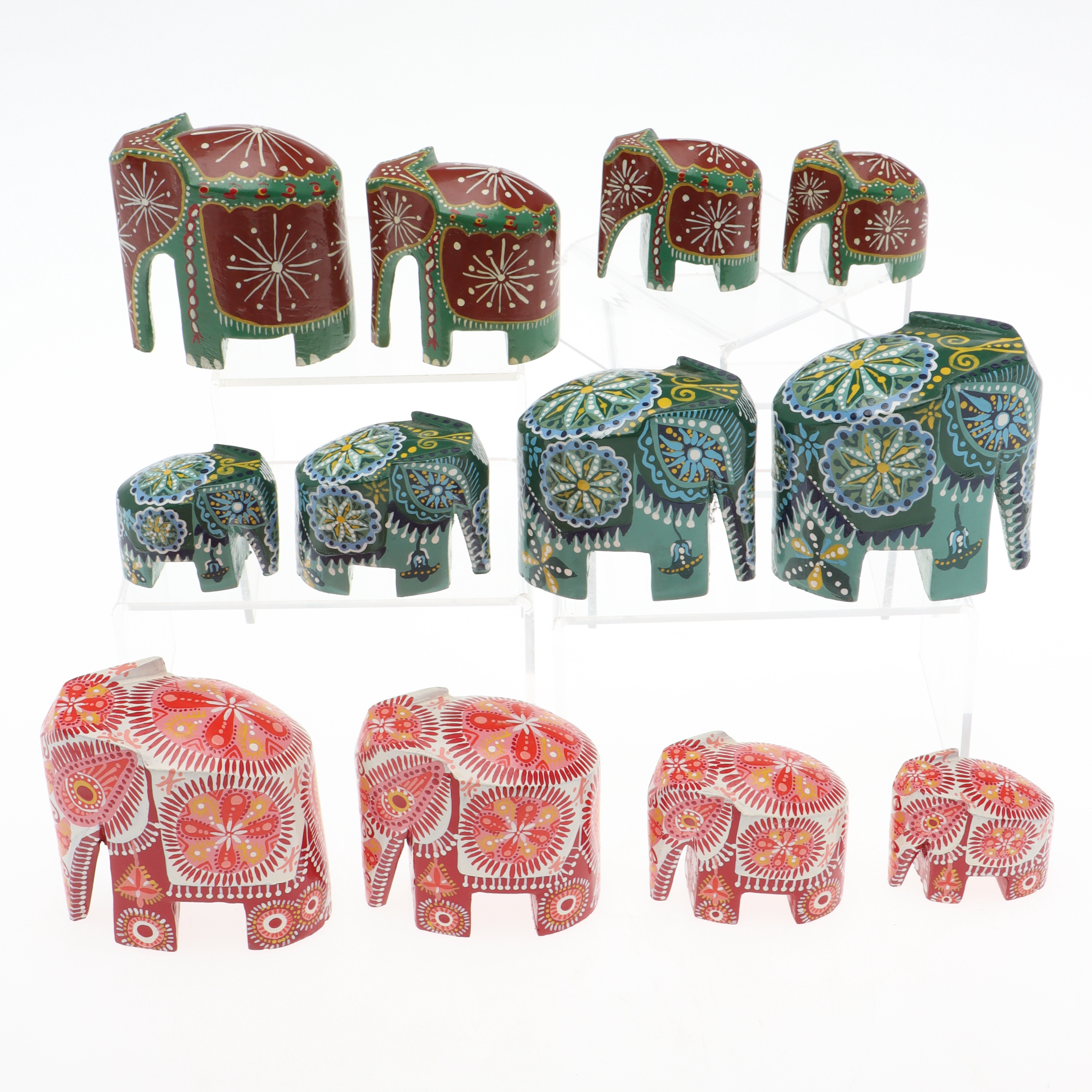 3970048. FIGURER, 12 stk, elefanter, malet træ.
